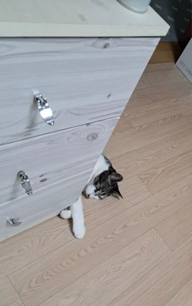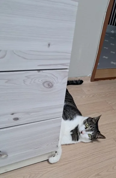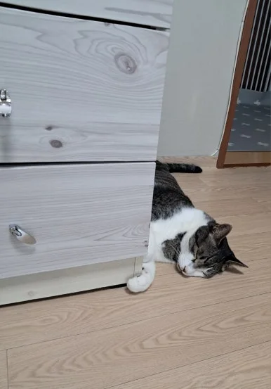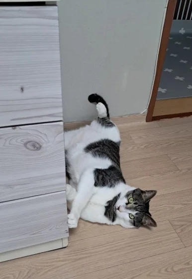 낮잠 자러 왔는데 집사들은 각자 할일 바쁘니 일단 오늘은 같이 자겠다고 간접적으로 의사 표현 중..