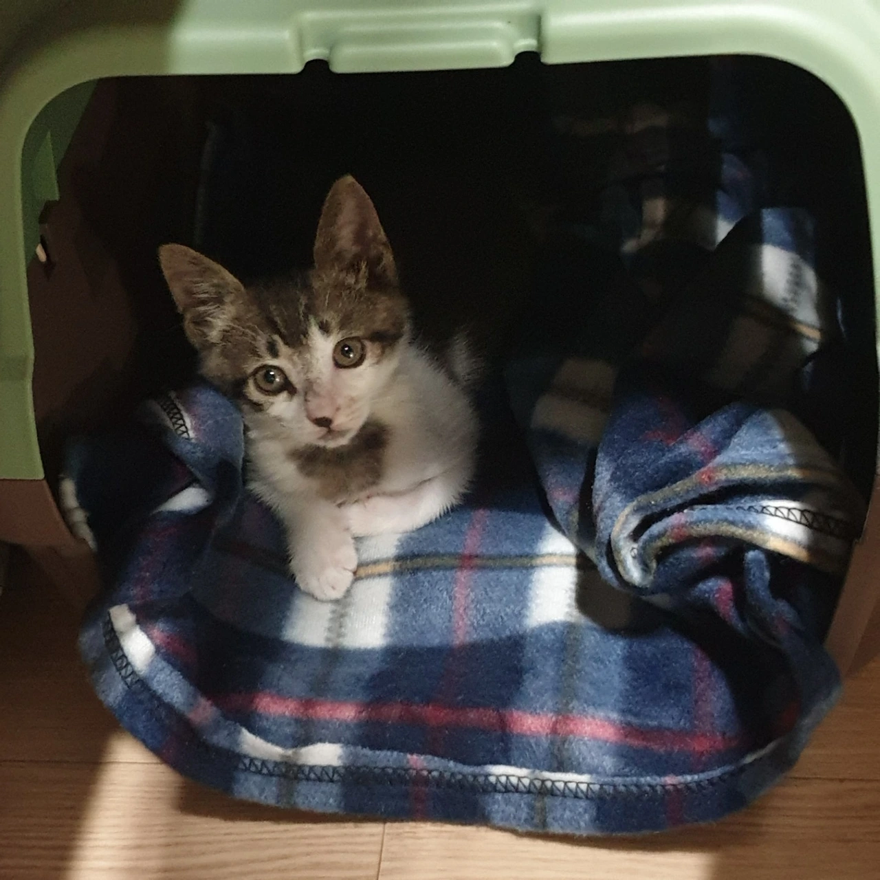 무릎담요를 좋아해서 넣어주었지만 큰엄마 옆만 못한지 표정이 밝지 않다.