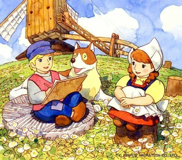 파트라슈 외에 넬로가 자신의 대담한 꿈을 털어놓을 수 있는 존재가 또 한 명 있었다. 바로 알루아였다. 알루아는 풀로 덮인 언덕 위에 자리한 빨간 풍차 방앗간에 살고 있었다. 알루아의 아버지는 방앗간 주인으로 마을에서 가장 부유한 농부였다. 어린 알루아는 부드럽고 둥근 얼굴, 발그레한 장밋빛 뺨에 다정한 검은 눈동자를 지닌 예쁘장한 아이였다. 스페인이 플랜더스를 통치하던 시절 스페인 사람들이 수많은 플랜더스 사람들의 얼굴에 남긴 검은 눈이었다. 알바 총독 통치기에 스페인 예술의 영향을 받아 온 나라에 웅장한 궁전과 위엄 있는 법원, 금박을 입힌 집과 조각된 상인방이 남았듯 문장에는 역사가, 돌에는 시가 새겨져 있었다.