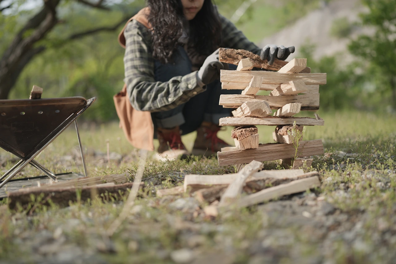 불을 피우는 데도 나름의 요령이 있다. 초보 캠퍼들은 빨리 불을 붙이겠다고 처음부터 장작을 너무 많이 쌓곤 하는데, 그러면 오히려 불이 잘 붙지 않는다.