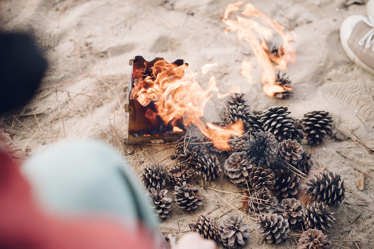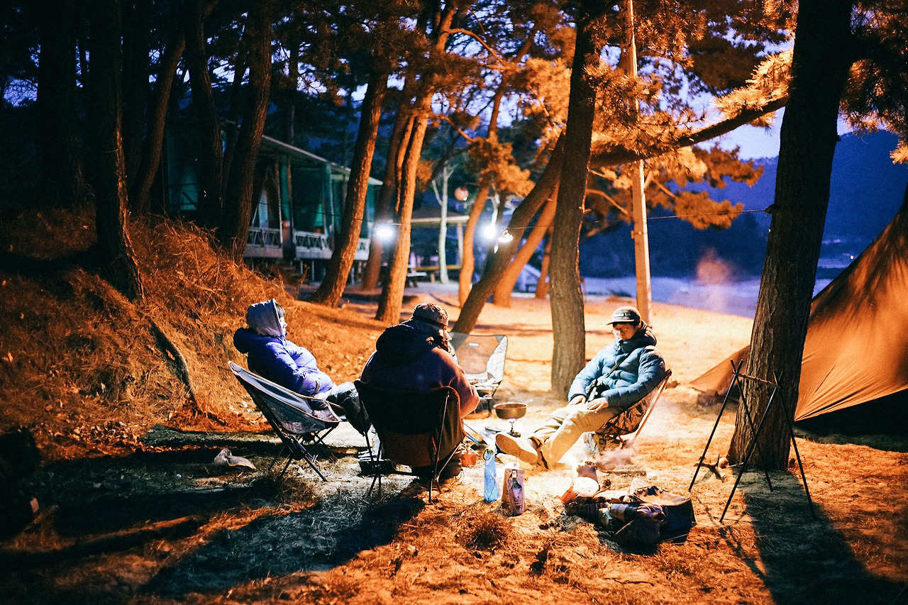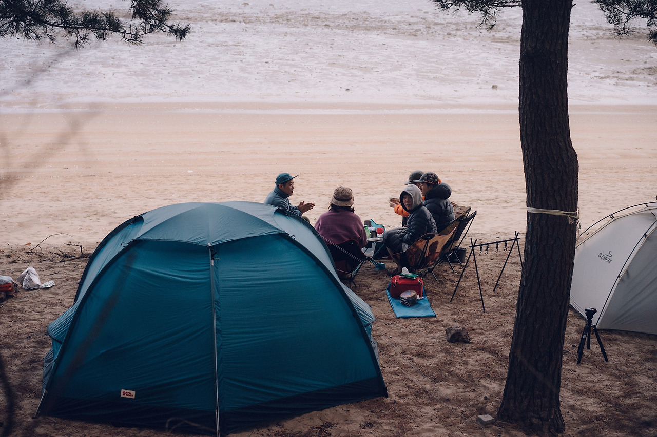 아침부터 분주했던 오늘, 누군가는 잠시 눈을 붙이고, 누군가는 주변 산책을 하고, 누군가는 텐트 안 침낭에서 빈둥거리고, 누군가는 바닷가를 바라보며 멍하니 앉아 있고, 또 누군가는 작은 화로에 솔방울을 넣고 불을 피우며 온기를 쬐어 본다.