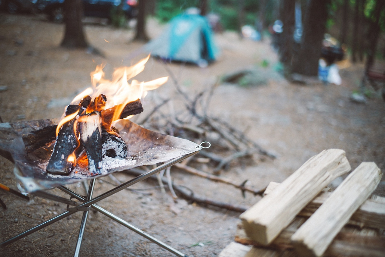 푸르스름한 어둠의 시간, 오후에 부지런히 주워나른 나뭇가지와 장작을 적당히 섞어 불을 붙여본다.