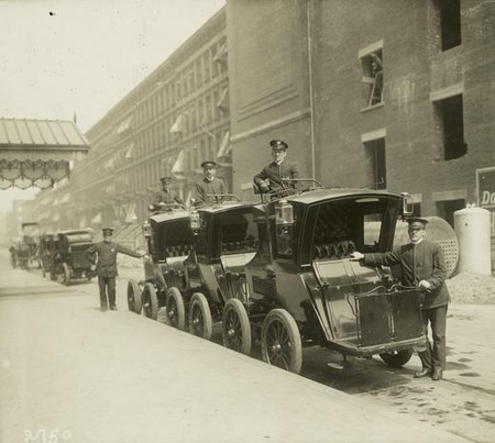 Fleet of electric taxis in New York City in 1897… drivers in uniform? How cool is that!