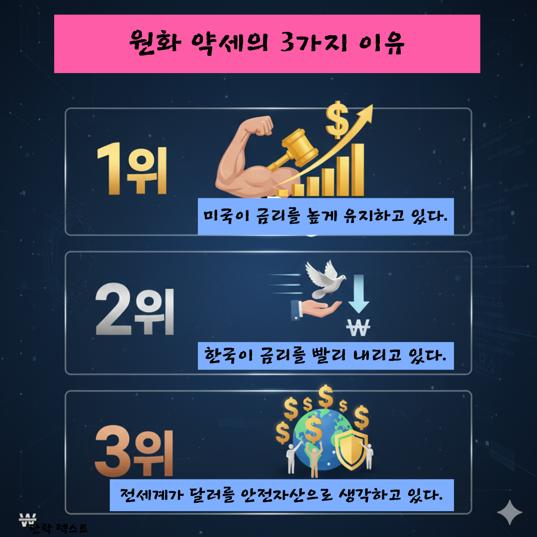 “지금 원화가 약한 건 우리나라 잘못만은 아니야. 미국 금리가 높고, 세상이 불안해서 생긴 자연스러운 현상이야. 조금 불편하지만 우리 경제가 망하는 건 절대 아니니까 너무 겁먹지 말자. 시간 좀 지나면 다시 괜찮아질 거야!”