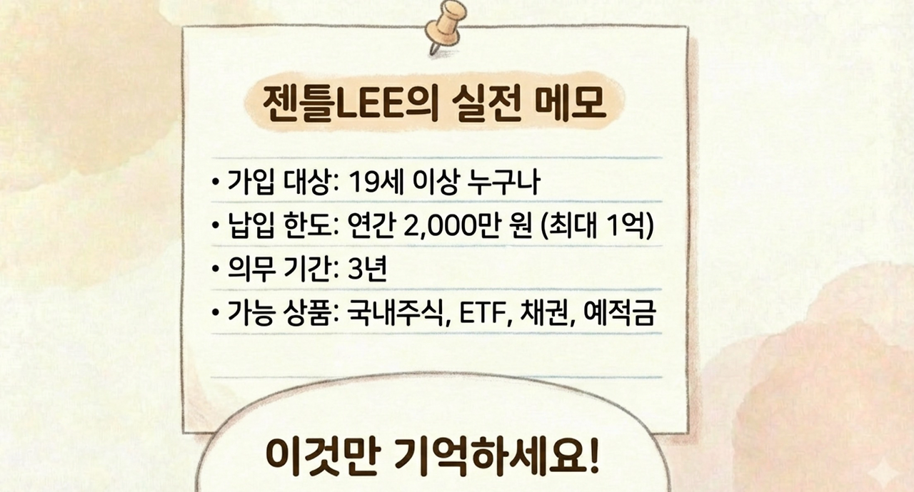 • 의무 보유: 3년 (만기 시 연금저축계좌로 이전하면 추가 세액공제 혜택!)