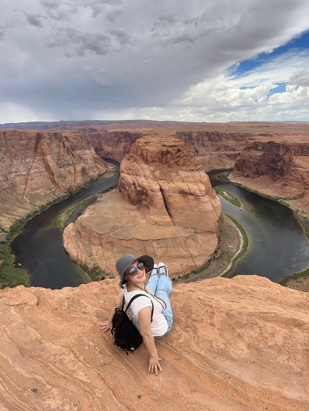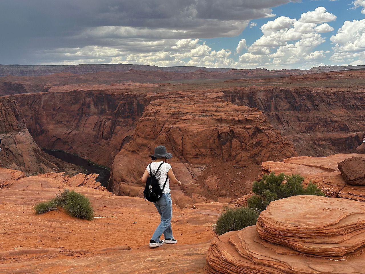 뷰파인더 안엔 말발굽 모양의 협곡, 굽이치는 강, 그 너머 펼쳐진 평원 그것과 맞닿은 하늘, 그 모든 게 있기는 했지만 뭔가 웅대함은 없고 황량함만 있었다. 하찮은 내 감각으로 홀스슈밴드의 장관을 곧이곧대로 담아내는 것도, 남편이 그 안에서 조화롭게 어우러지는 뷰포인트를 찾는 것도 불가능했다. 몇 번의 시도 후 결국엔 누군가의 그럴듯한 인스타 사진을 모방하려 했지만, 뭐가 문제인 건지 사실 따라 하는 것도 쉽진 않았다.