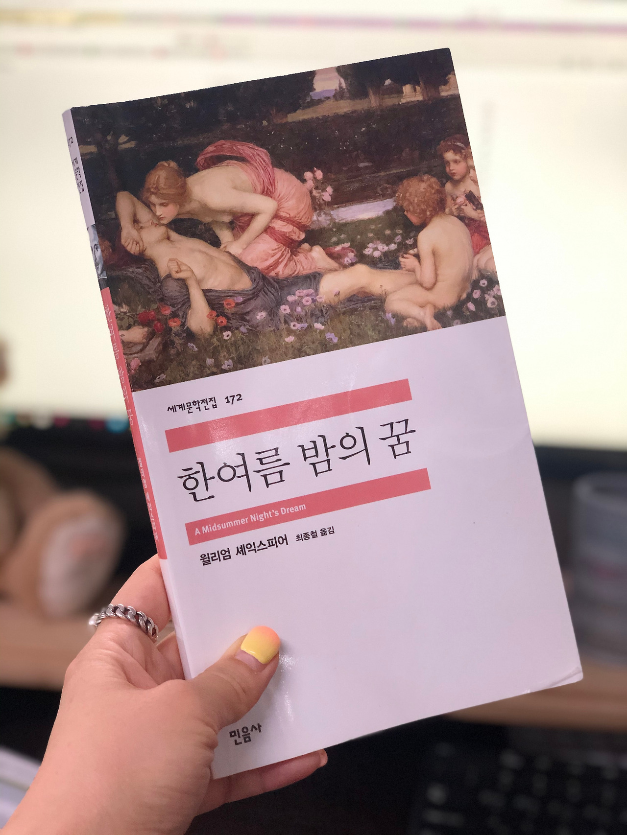 얼마나 책에 집중한 것인지, 지하철에서 내릴 때 카드지갑을 바닥에 떨어뜨리고서도 알아채지 못했다. 그냥 난 책에 빠져들었다. 셰익스피어의 <한 여름밤의 꿈>. 누구나 이름만 들으면 알 수 있는 고전. 중학교 때부터 책꽂이에 무심하게 꽂아져 있었지만, 읽지 않았다. 언젠가는 읽어야지 미루고 미루다 책장 한 번 넘기지 못했다.