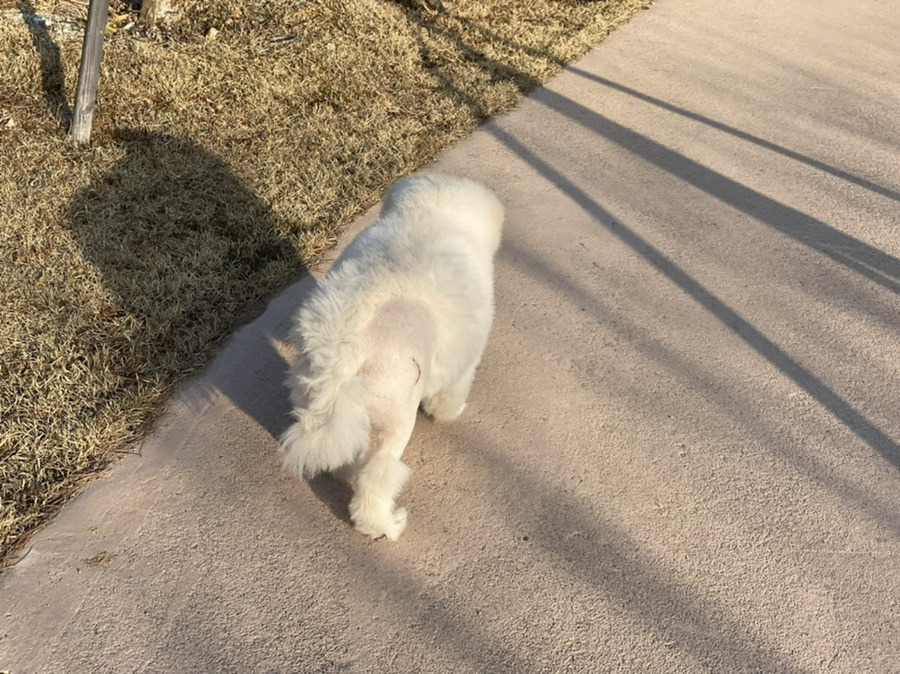 수술 후에는 운동과 다이어트에 매진해야 했다. 사료도 다이어트용으로 바꾸고 간식도 거의 주지 않았다. 하지만 워낙 움직임이 없는 아이라 살이 잘 빠지지 않았다. 뒷다리에 수술 자국이 너무 커서 볼 때마다 마음이 좋지 않았다. 얼마나 아팠을까? 정말 순한 아이라서 주사 맞을 때도 낑소리 한번 내지 않는데... 오히려 그게 더 안쓰럽게 느껴졌다.