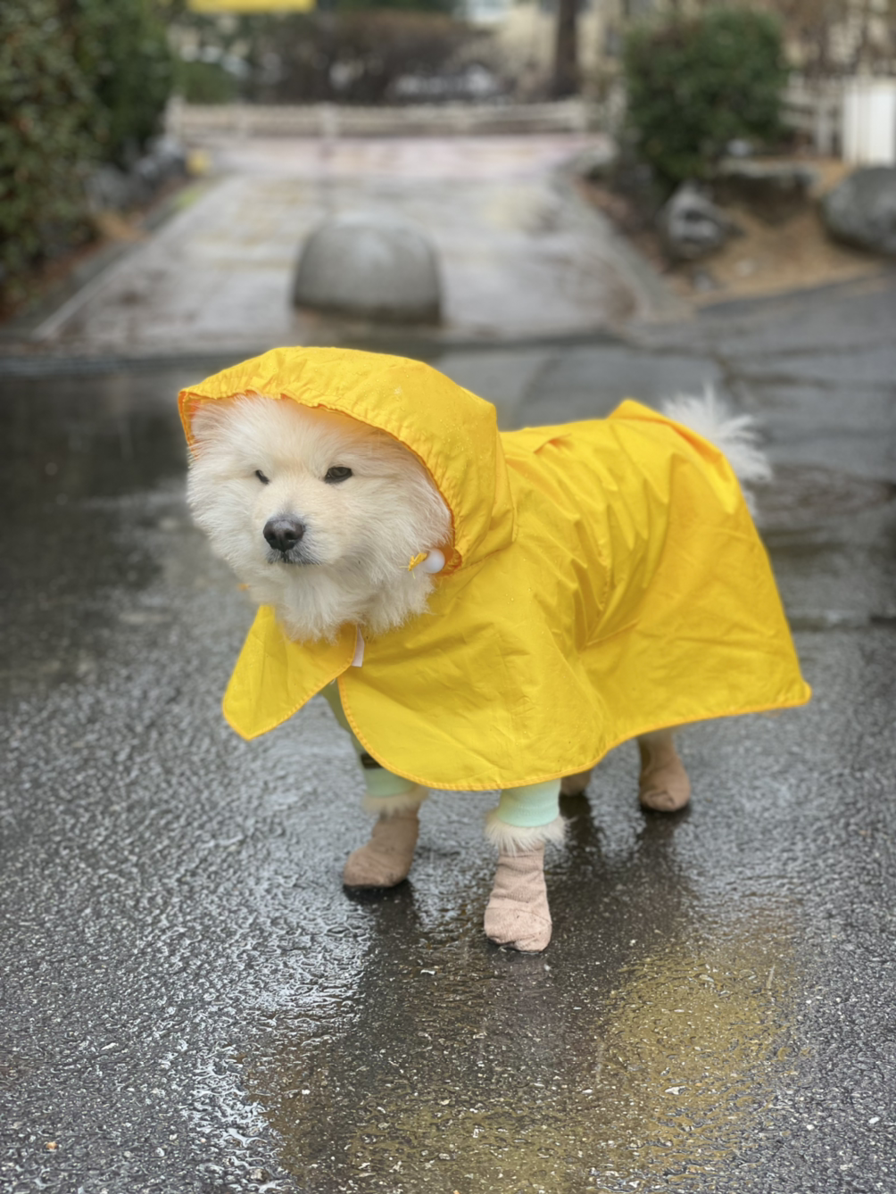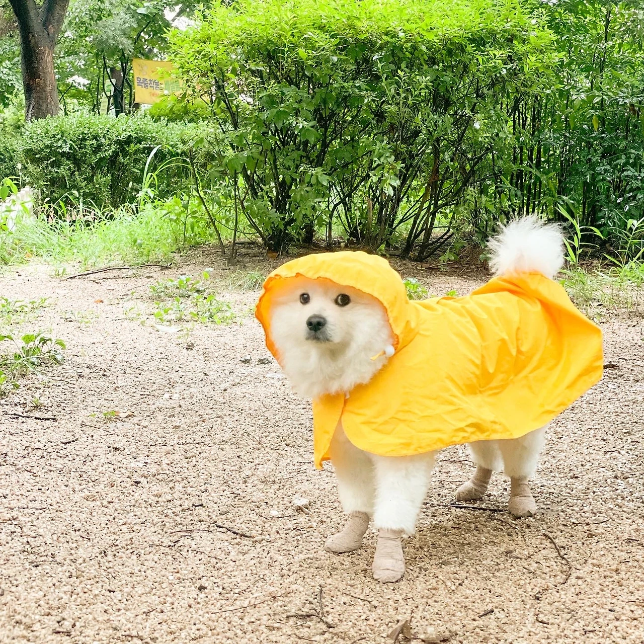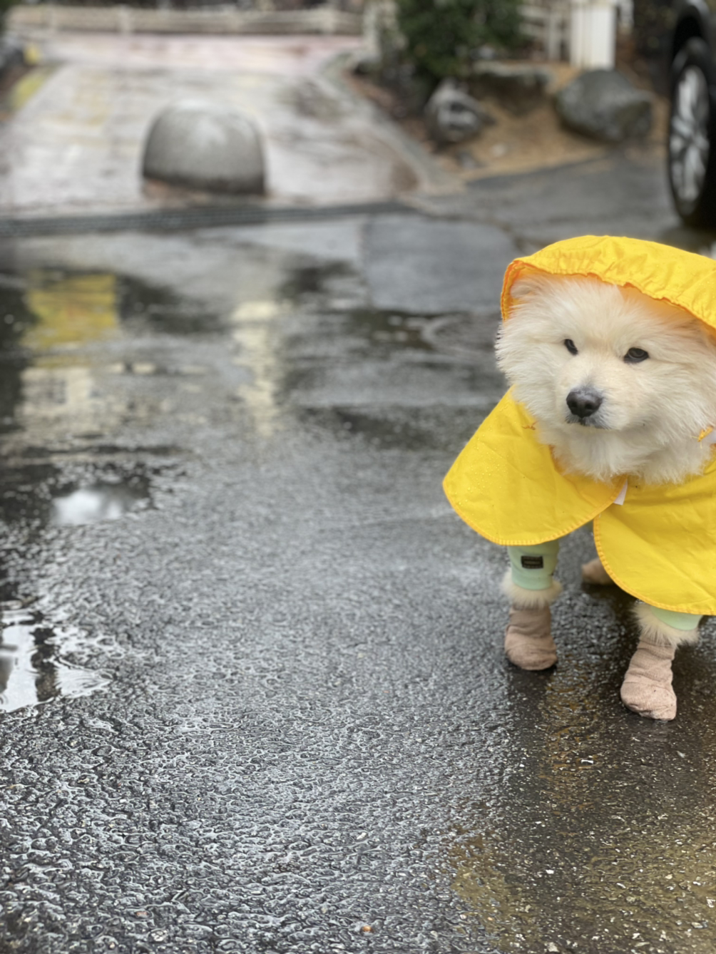지나가는 사람들은 노란 우비를 입은 푸디가 귀엽다며 웃는다. 그리고 누군가는 “비 오는데 왜 나왔어?”하며 말을 걸기도 한다.