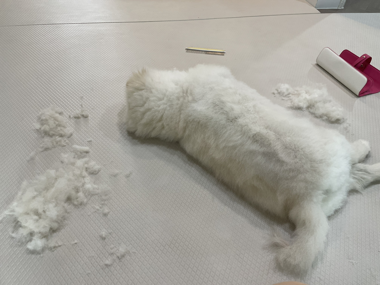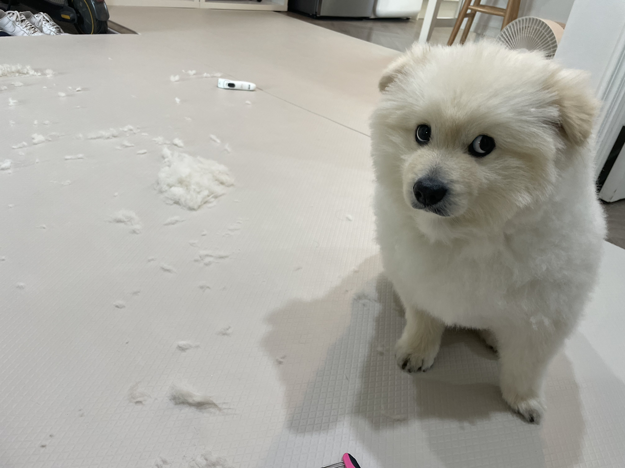 작년까지만 해도 푸디는 두세 달에 한 번쯤 미용을 했다. 모량이 많고 또 금방 자라는 아이라 가위컷으로만 전문가의 손에 맡겼었다. 언제나 곰돌이컷으로 잘라달라 요청을 드렸지만, 미용하고 난 푸디는 언제나 하얀 백구가 되어 있었다.