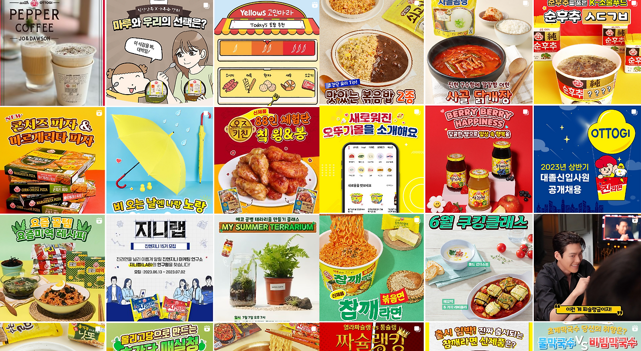 나쁜 사례를 적기는 좀 그렇지만 많은 회사에서 대부분 SNS를 모든 회사가 하다보니 운영하는 경우가 많다. 그저 만들어져 있는 포스터와 홍보물을 복붙하여 업로드하는 경우가 많은데 오뚜기의 SNS는 앞서 있는 디지털 전략과 일맥상통하는 디지털 브랜드를 구축한다는 점에서 인상 깊다. 굉장히 젊고 감각적인 이미지를 활용하여 오뚜기가 어떻게 보면 가격 상에는 저가 가격의 식품 브랜드로 기억될 수도 있지만 다양한 조리방법을 알려주고 젊은층과 소통하는 만화, 소통형 게시글을 통하여 타 브랜드에 비해서 소통한다는 느낌이 강한 점이 좋은 부분으로 작용하는 것 같다.