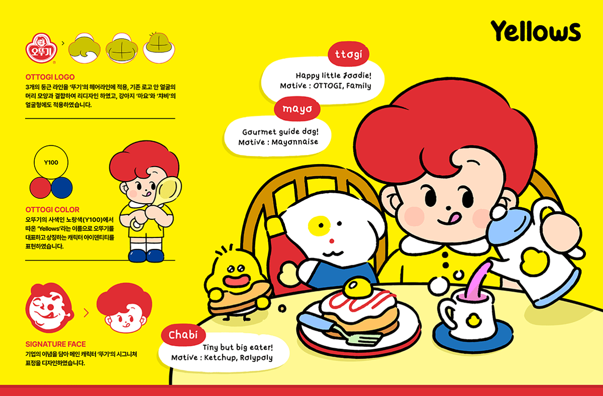 젊고 감각적인 캐릭터를 만들어 소비자가에게 다가간 것이 우선적으로는 좋은 접근이라는 생각이 든다. 아무래도 기존의 오뚜기가 고리타분 하다는 인식이 많았고 특히 샛노랑색은 심지어 촌스럽다는 느낌이 많았는데 새롭게 선보인 오뚜기 캐릭터는 빨갛고, 노란색이 촌스럽기보다는 친근하고 귀엽게 다가오게 만들어진 것이 너무 잘한 기획이 아닐까라는 생각이 들었다. 귀여운 캐릭터를 내세워 새로운 브랜드 패르소나를 구축하여 50살 넘은 브랜드가 회춘하는 브랜드 경험을 구축했다.