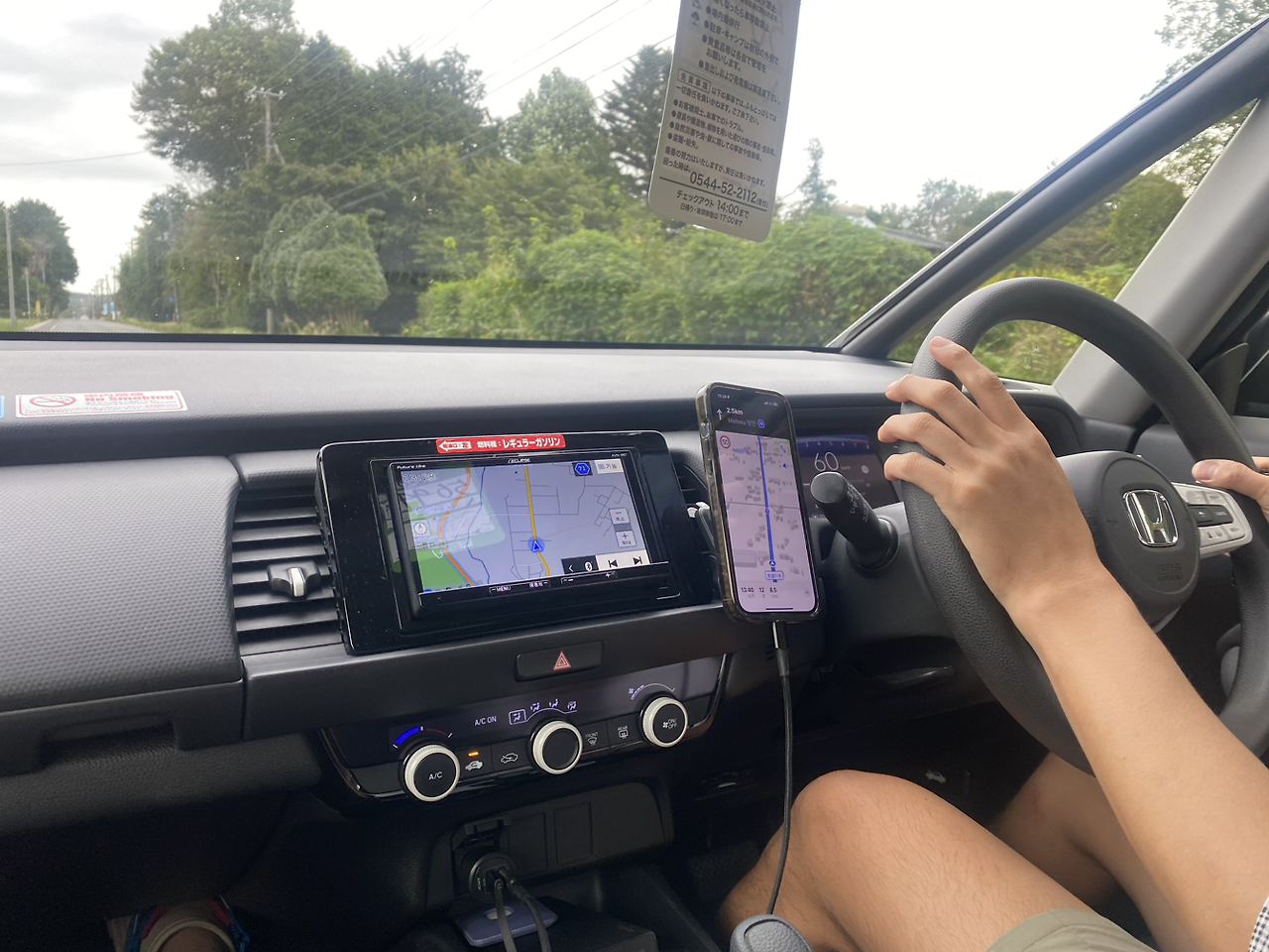 차량은 7만 km가량 달린 혼다 피트. 자란넷에서 3박 4일 풀보험 및 etc 포함 27만 엔이라는 저렴한 가격에 예약했다. 기대하지도 않았던 크루즈 컨트롤까지 있어 아주 만족스러웠다. 스마트폰 네비를 사용하고자 핸드폰 거치대와 시거잭 충전기는 따로 가져갔다.