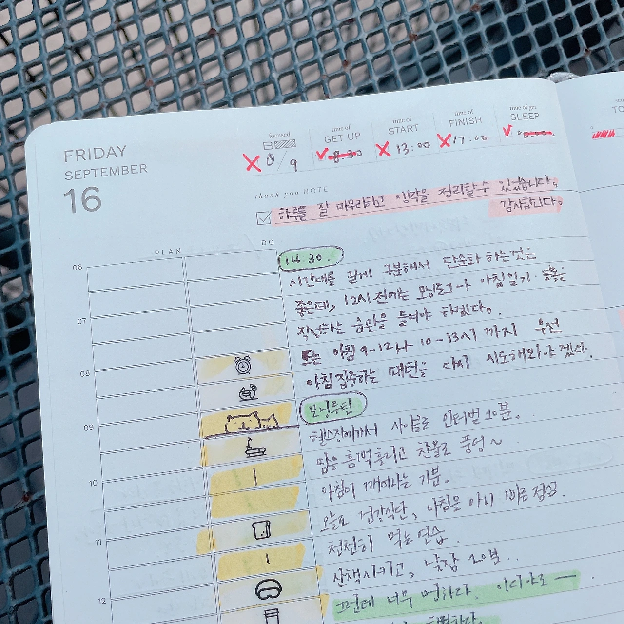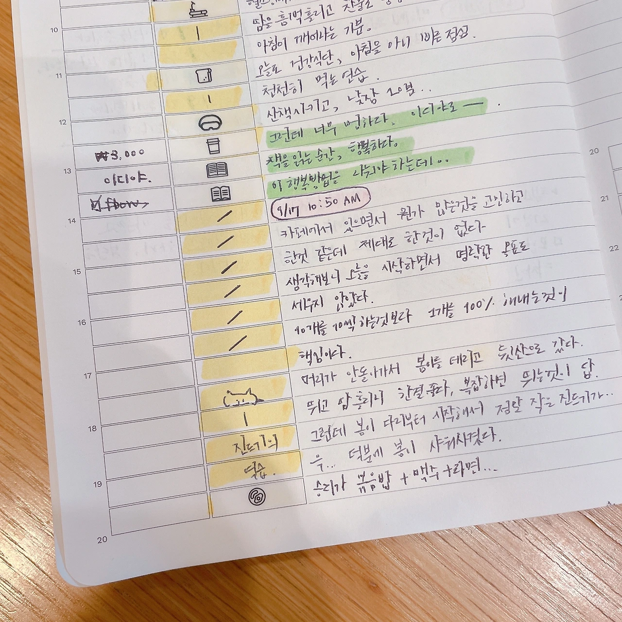 시간대를 길게 구분해서 단순화 하는 것은 좋다. 하지만 그래도 12시전에는 모닝로그, 아침일기, 아침 블록 정리는 끝내야겠다. 또는 아침 9-12, 10-13시 까지 아침 집중 패턴을 다시 시도해봐야겠다. 오히려 아침이 너무 길게 늘어지니, 집중력이 흐트러지는 느낌적인 느낌이다.