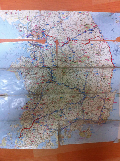 그래서 원래 계획은 담양에서 시작해 고성의 통일전망대까지 가는 것이었다. '국토대장정'하면 대부분 떠올리는 코스다. 하지만 워낙 즉흥적인 성격인 나는 담양까지 버스를 타고 가는것이 너무 귀찮았다. 강원도를 가로 질러서 7번국도를 타고 내려가는길도 매력적이겠다는 생각이 갑자기 떠올랐다. 원주와 동해에 사시는 이모와 외삼촌의 집에서 자면 돈도 절약 할 수 있겠다는 현실적인 이유도 있었다. 하지만 가장 큰 이유는 그냥 버스를 오래 타고 내려가는게 너무 귀찮았던 것이다. 그리고 이 모든건 여행 당일 지하철을 타고 강남터미널로 가는길에 정해졌다.