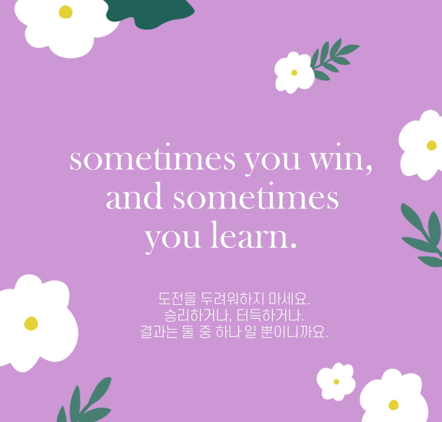 다른 사람의 삶을 기웃거리지 마세요. 태양은 태양의 때에 빛나요. 달은 달의 때에 빛을 내죠. 누가 더 낫다고, 누가 더 멋지다고 할 수 없어요. 다른 사람들이 무엇을 해서 성공했는지가 왜 중요한가요? 당신이 무엇을 보고 있는지가 중요한 거예요. 당신이 무엇에 가치를 두는지가 중요한 거고요. 당신이 무엇을 잘하는지가 중요해요.