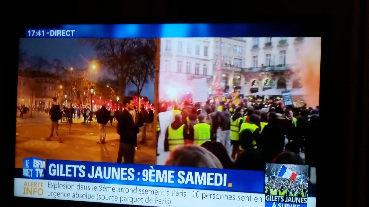오늘 스트라스부르 여행은 노란 조끼 시위대와 함께 한 느낌이다. 한국에서 뉴스로 볼 땐 무서웠지만 실제로 보니 너무나도 인간미가 있는 시위였다. 그런데 호텔에서 TV를 틀어보니 계속 생방송으로 파리 노란 조끼 시위단 뉴스가 나온다. 스트라스부르와 달리 파리는 굉장히 과격했나 보다. 난 시위의 자세한 내막을 잘 모르는 잠깐 스쳐가는 이방인일 뿐이지만 더 이상 누구도 상처 받지 않고 원만하게 잘 해결되길 바란다.