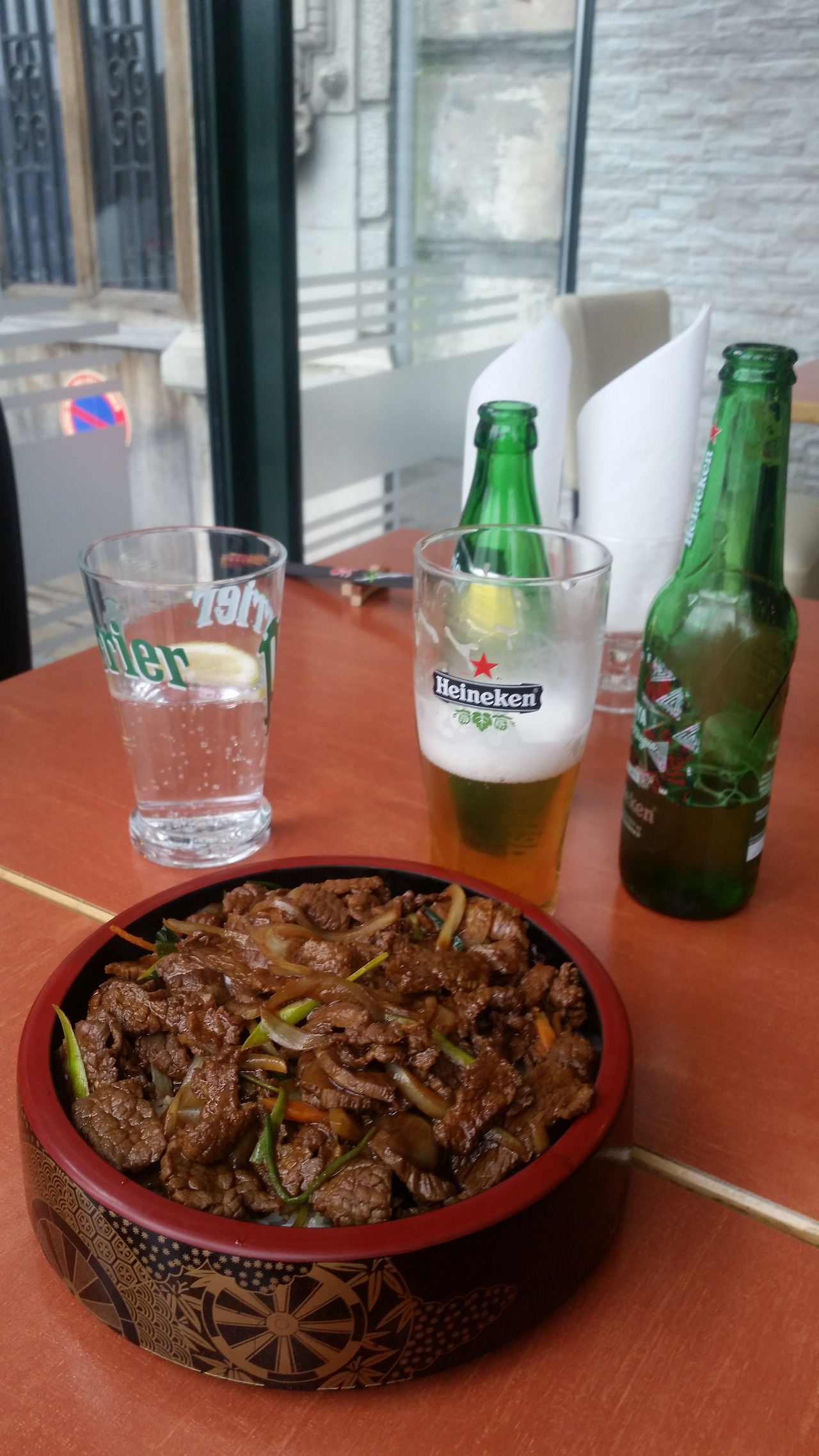 어차피 점심은 먹어야 하니 밥부터 먹고 상황을 지켜보기로 했다. 아까 호텔 옆에 있던 식당이 생각나서 가봤더니 생각지도 않았던 일식집이다. 날마다 먹는 빵에 질린 터라 밥이 먹고 싶어 주저 없이 들어갔다. 메뉴를 보니 규동이 딱 보인다. 일단 규동을 시키고 맥주 한 잔이 생각나는데 뭘 시킬까 하다 하이네캔을 한 병 시킨다. 시키고 나서 조합을 보니 프랑스에서 규동에 하이네켄이라... 참으로 묘하다... 다행히 규동은 맛있었고 오래간만에 씹어보는 하얀 쌀밥은 행복감을 주었다.