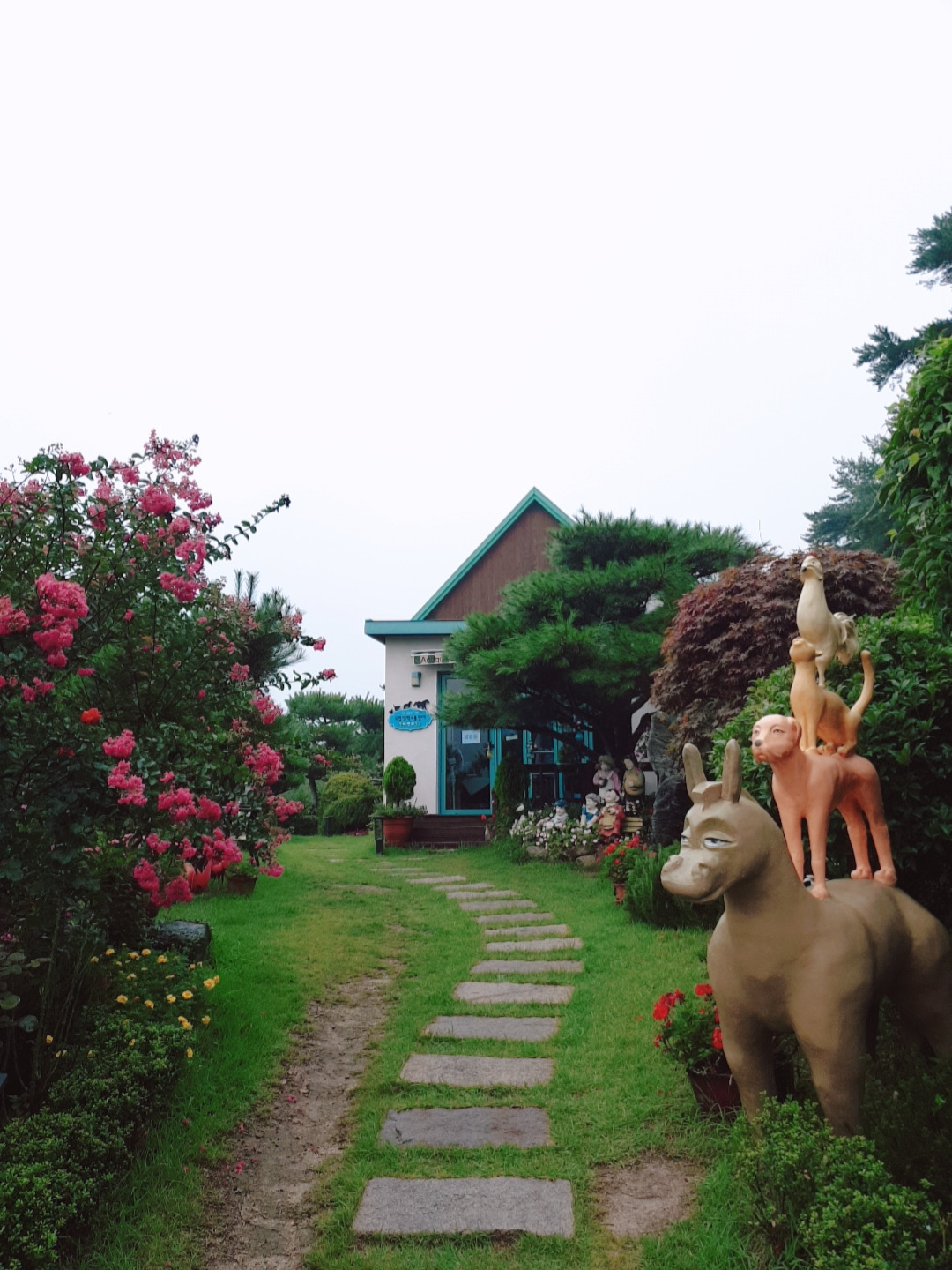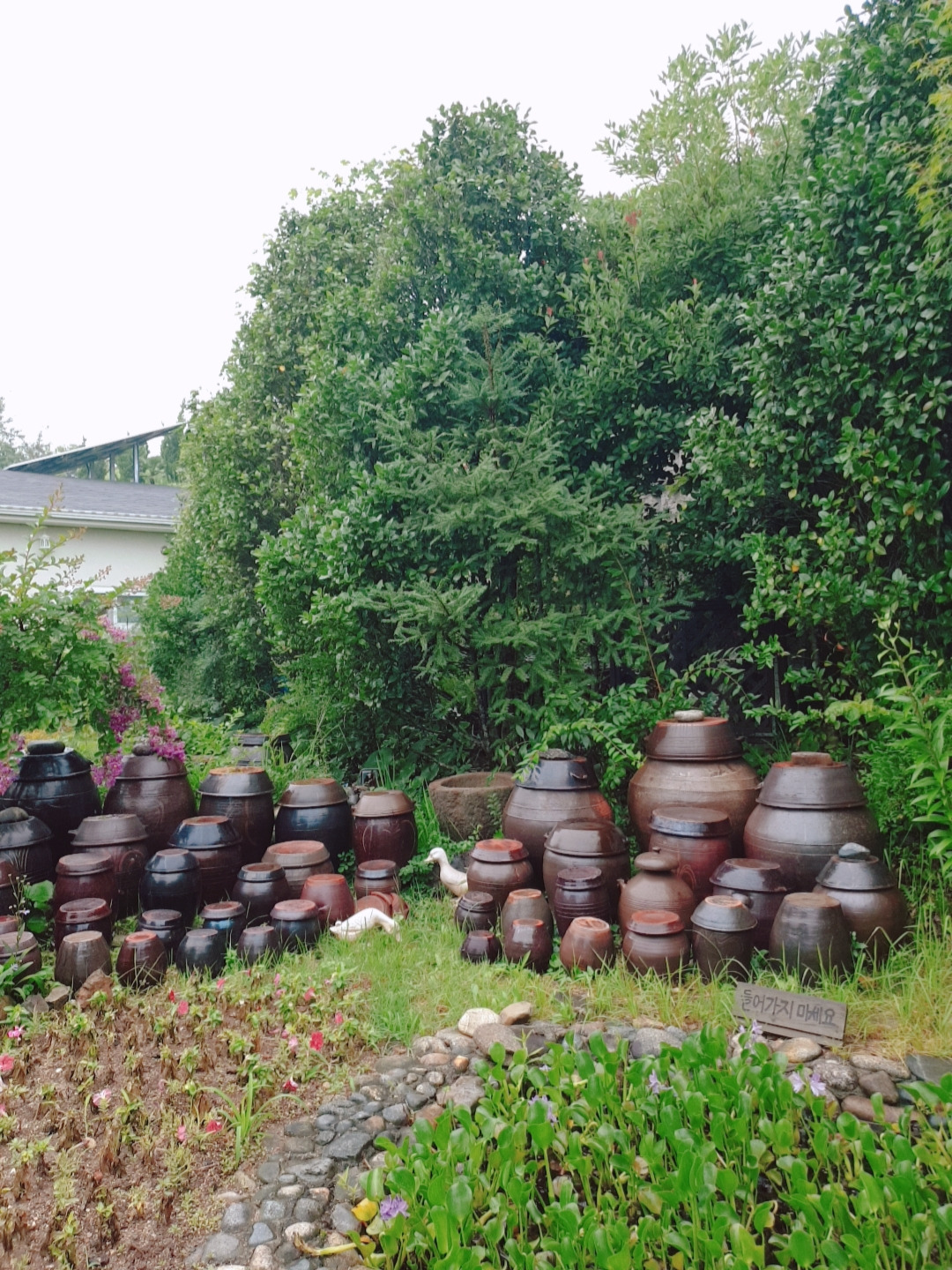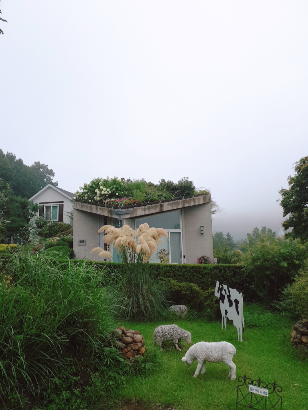 인사를 못한 호스트님께 감사의 문자를 보내고 이불을 정리해놓고 짐을 챙겨서 숙소를 나왔다. 다행히 비는 많이 내리지 않았다. 40분쯤 달려 원예예술촌에 도착했는데 10시도 안 된 시간인데도 차가 꽤 있다. 빗물을 머금은 나무와 꽃들은 싱그러웠고 정원을 품은 집들은 아름다웠다. 어제는 안 찍던 사진도 많이 찍었다. 비는 오지만 어제보단 훨씬 기분이 좋았다.