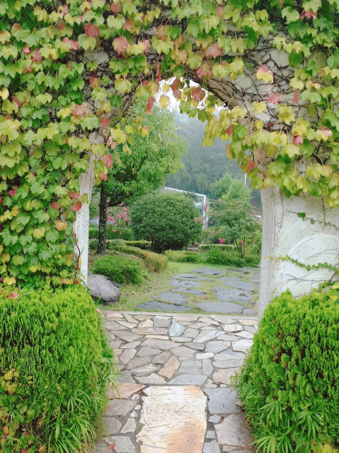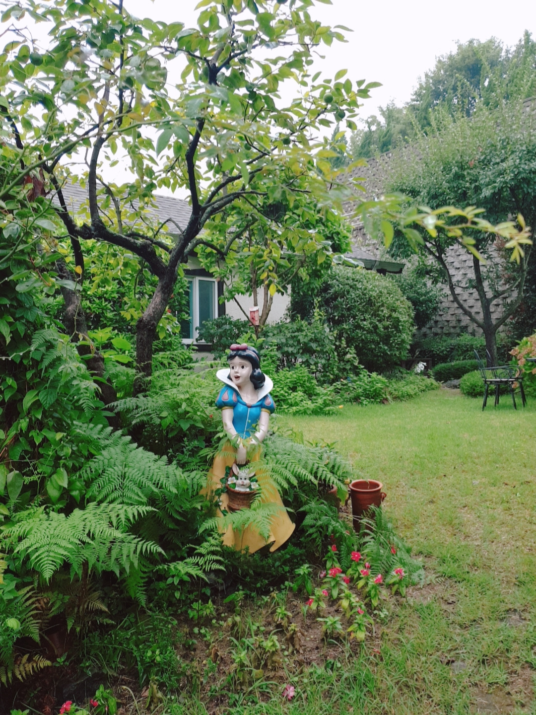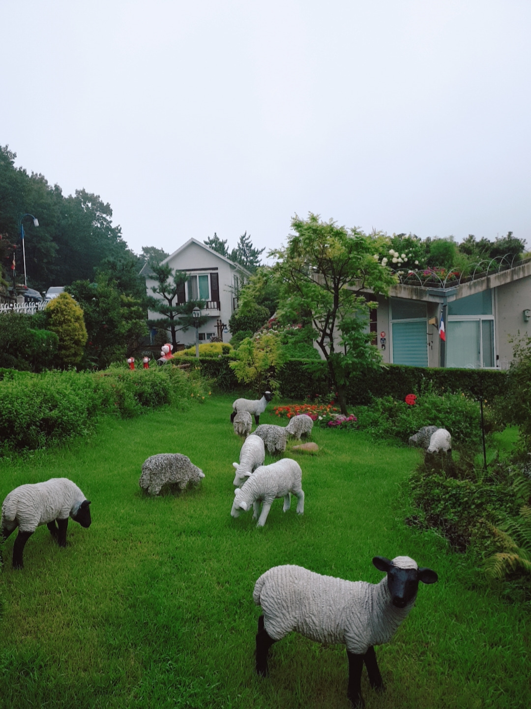 인사를 못한 호스트님께 감사의 문자를 보내고 이불을 정리해놓고 짐을 챙겨서 숙소를 나왔다. 다행히 비는 많이 내리지 않았다. 40분쯤 달려 원예예술촌에 도착했는데 10시도 안 된 시간인데도 차가 꽤 있다. 빗물을 머금은 나무와 꽃들은 싱그러웠고 정원을 품은 집들은 아름다웠다. 어제는 안 찍던 사진도 많이 찍었다. 비는 오지만 어제보단 훨씬 기분이 좋았다.
