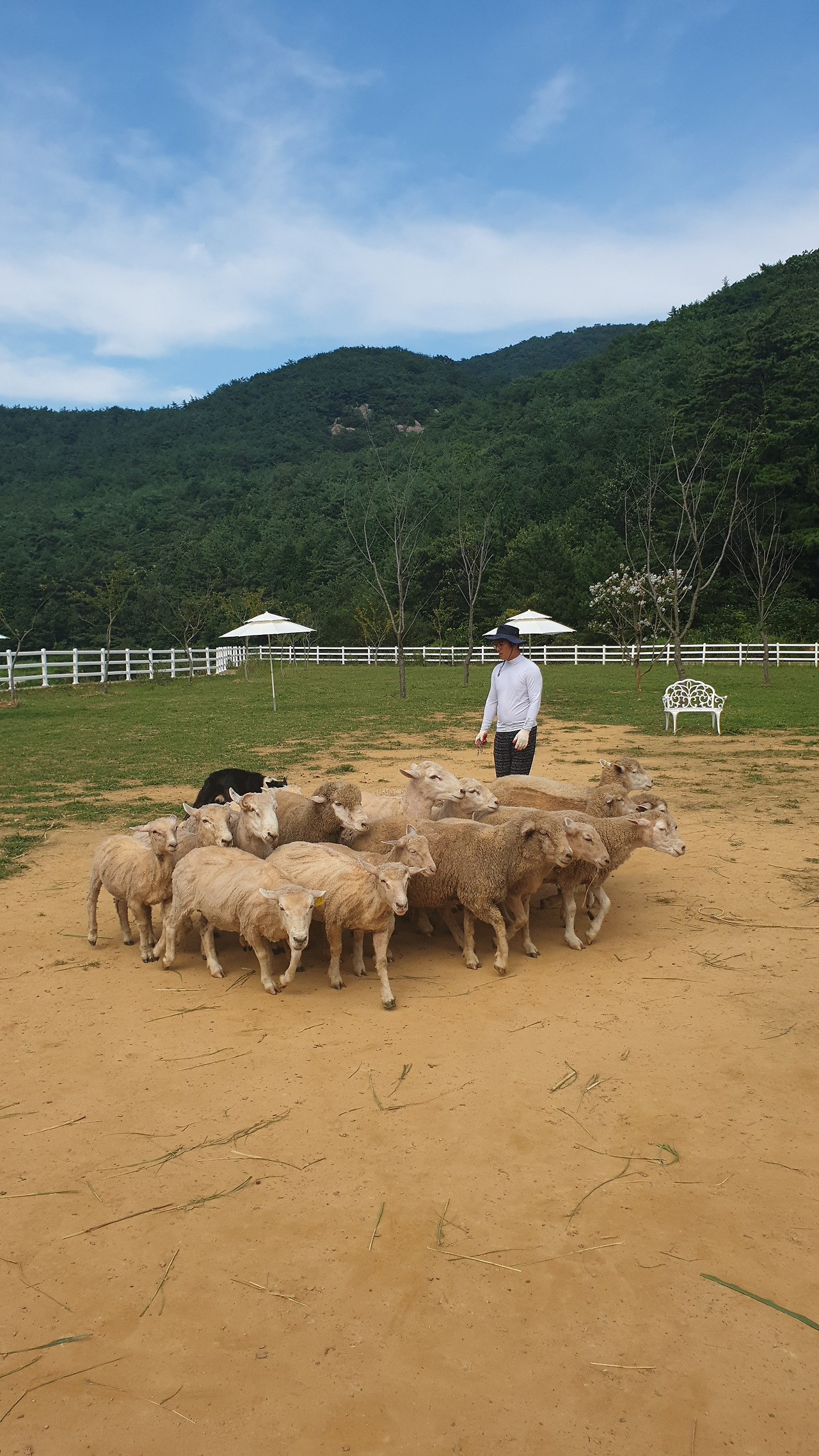 그리고 근처에 있다는 남해양떼목장으로 갔다. 원조는 따로 있다는데 이제 막 조성 중인 목장인가 보다. 입구에 평소엔 주말에만 연다고 쓰여 있고 아직 준비 중이라고 한다. 양 먹이주기 체험용 바구니를 받아서 목장 안으로 들어갔는데 양들이 내가 상상하던 모습이 아니다. 털을 깎아서 앙상한 데다 그 털마저 하얀색이 아니라 누리끼리하다. 3시 정각에 한다는 양몰이쇼랑 원반 던지기 체험까지 하긴 했지만 역시 만족스럽지 않다.