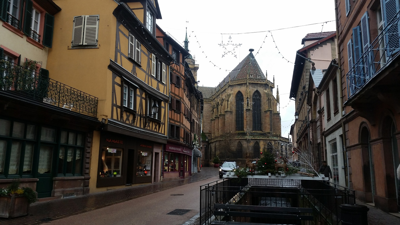 기차로 30여분을 달려 콜마르 역에 도착했다. 역에서 15분 정도 한적한 주택가를 걸어가니 쁘띠 베니스가 나왔다. 집 모양은 스트라스부르랑 비슷한데 집들이 온통 파스텔톤이라 콜마르가 좀 더 예쁜 느낌이다. 아기자기 예쁜 골목을 거닐며 날씨만 좋았다면 더 바랄 게 없겠다는 아쉬움이 생긴다. 이놈의 우기... 오락가락하는 비에 우중충한 하늘... 너무너무 싫다. 돌아다니다 보니 성당이 보인다. 생 마르탱 성당이다. 성당 안에 들어가니 마음이 고요해진다. 의자에 앉아 지친 몸과 마음을 잠시 쉬어갔다. 근처에 있는 시장에 들렀다 다시 역으로 돌아갔다.