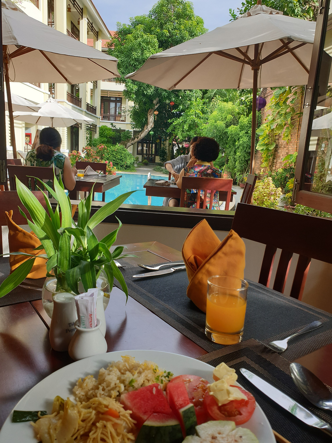 6시 30분에 알람을 맞춰놨지만 새소리에 알람이 울리기 10분 전에 잠이 깼다. 호텔이 사진발이라고 투덜댔지만 새소리, 개소리에 작은 도마뱀까지 자연친화적인 건 분명하다. 게다가 초록 나무와 작은 수영장을 앞에 두고 먹는 조식은 한없이 평화롭다. 사진발이 쪼~끔 있긴 하지만 예쁜 건 인정!