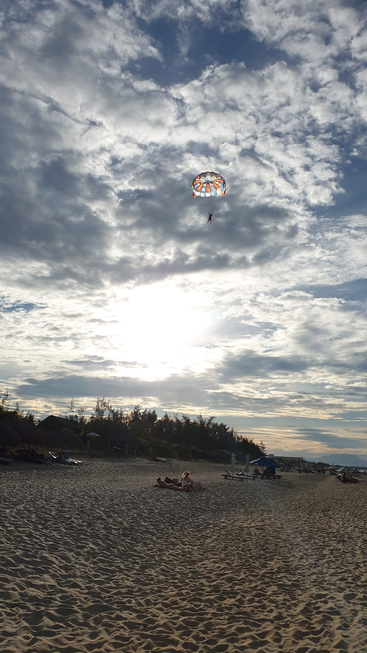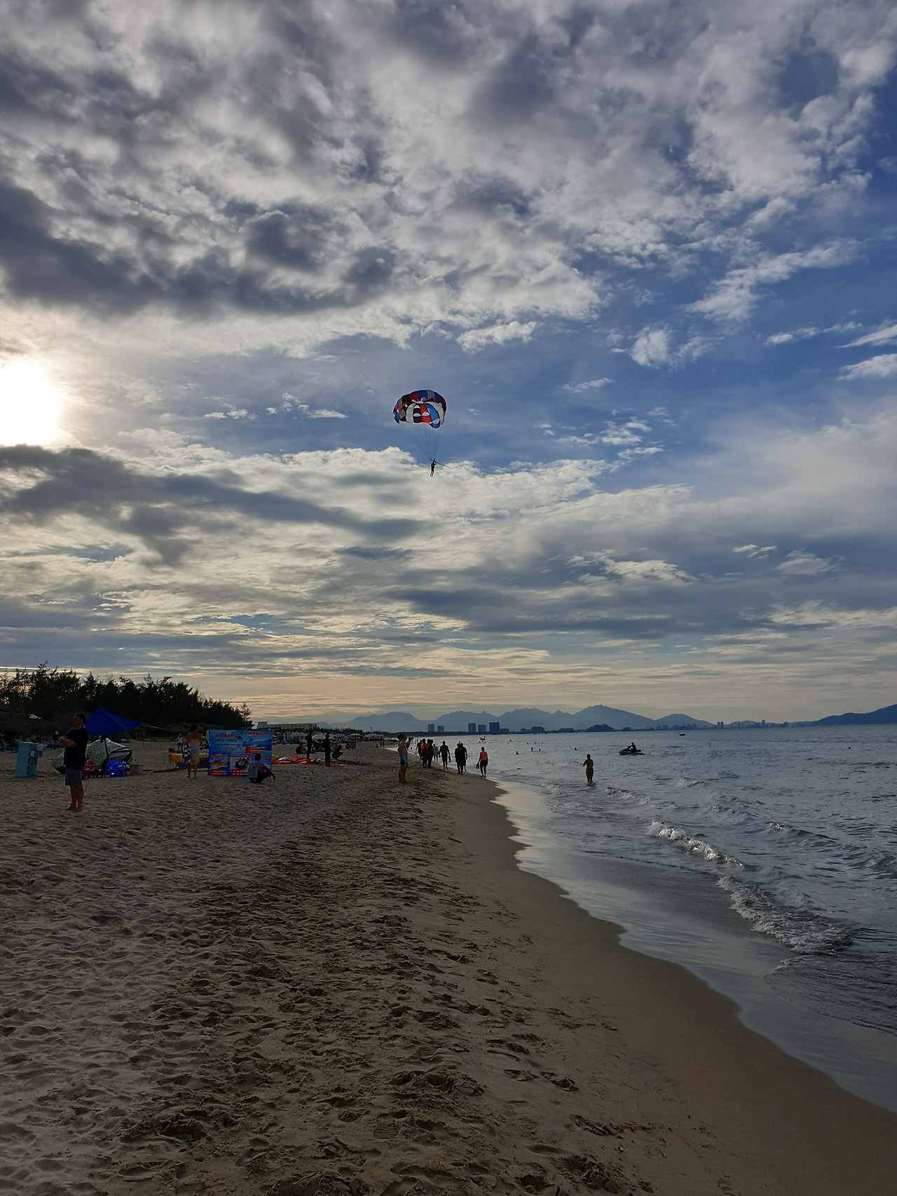 안 방 비치로 나가 해변을 거닐어 본다. 사람은 많지만 그래도 다들 행복하고 여유로워 보인다. 하늘 위에선 패러세일링 하는 사람들이 바다에는 제트 스키와 바나나 보트 타는 사람들이 많다. 친구가 패러세일링이 해보고 싶단다. 고소공포증이 있는 난 보는 것만으로도 오금이 저릴 만큼 아찔하니 정중히 사양하고 친구가 하는 모습을 영상으로 남겼다. 정말 대단하다~! 완전 멋져~!