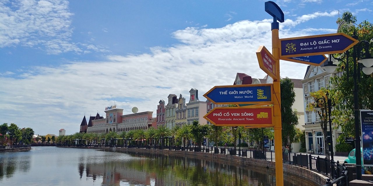 아무튼 에어컨 빵빵하게 나오는 택시를 타고 15분쯤 달려 호이안 구시가지를 벗어나니 한적한 벌판이 나온다. 소가 풀을 뜯고 있는 모습을 심심찮게 볼 수 있을 정도다. 좀 더 달리다가 허허벌판에 아주 허름한 천막? 판자집?에 기사 아저씨가 잠시 정차하더니 "티켓?"이라고 묻는다. 그 허름한 천막에서 나온 아저씨가 1인당 55만 동 둘이 합쳐 110만 동이란다. 어제 인터넷으로 검색해봤으니 입장료가 55만 동(27,000원) 이란 건 이미 알고 있는데 한국의 삼성그룹쯤 된다는 빈펄 그룹에서 만든 놀이공원(우리나라로 치자면 에버랜드 정도?) 입장권을 이렇게 야매스럽게 판다고? 이거 사기 아니야? 순간 또 눈탱이 맞는 거 아닌가 싶어서 머릿속이 복잡해졌지만 이러지도 저러지도 못하고 어영부영하다 우린 결국 110만 동을 세서 아저씨한테 주고 카드식 입장권 2장을 받았다. 계속 찜찜한 마음이 들었으나 이미 돈을 냈으니 사기가 아니길 바라는 수밖에...