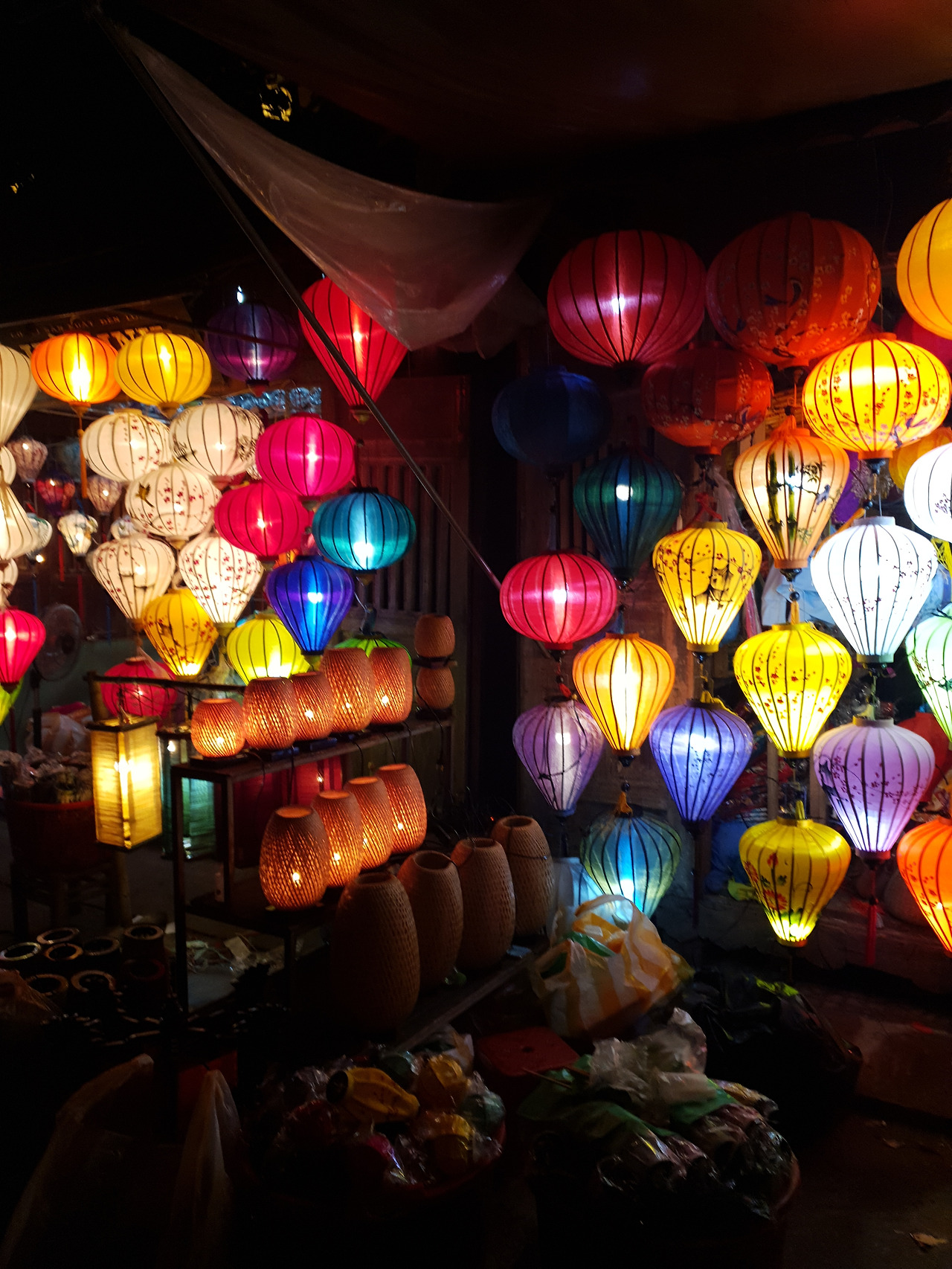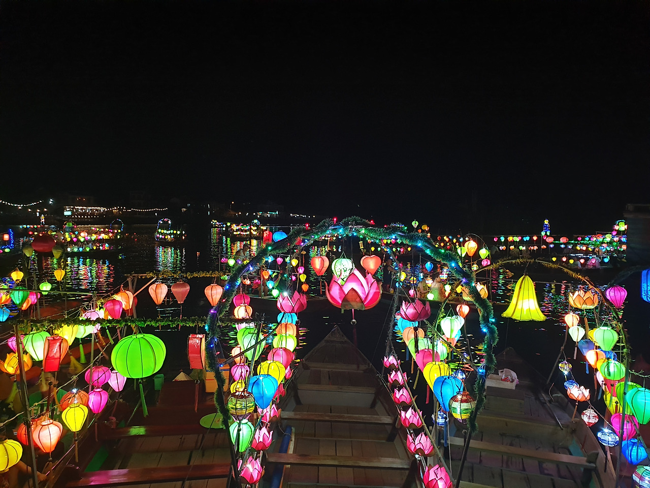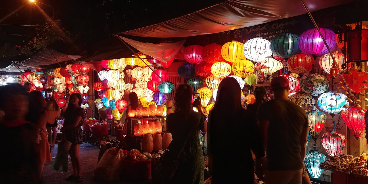 만족스러운 저녁을 먹고 야시장에 가는 길에 첫날 갔던 올드타운에 다시 갔는데 배에 단 전등의 불빛은 여전히 감동스러울 만큼 아름다웠으나 사람이 많아도 너~~~ 무 많다. 베트남 사람들도 휴가철에 호이안을 많이 온다던데 그래서 그런지 외국인, 현지인 할 것 없이 너~~~ 무 많다. 사람이 너무 많으니 정신이 하나도 없어서 야시장에서 뭘 살 엄두가 안 난다. 원래는 예쁜 슬리퍼랑 라탄 백도 사고 망고랑 망고스틴을 사갖고 가려고 했으나 아무것도 못 사고 힘겹게 인파를 헤치고 호텔로 돌아왔다. 내일 아침엔 호이안을 떠나야 한다고 생각하니 아쉽다.