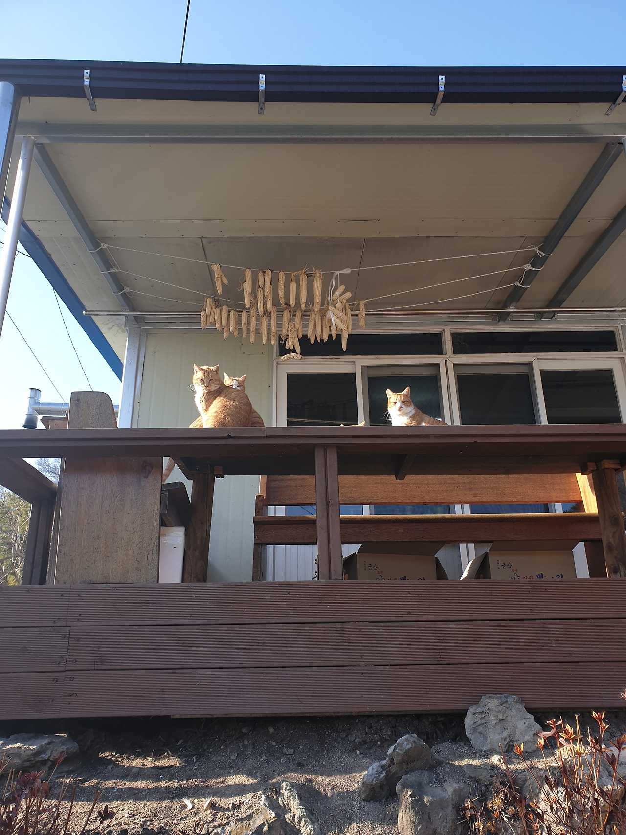 그리고 지난가을에 새끼였던 주차장 앞집에 사는 고양이들이 고새 많이 컸다. 그 모습이 너무 예뻐서 좀 가까이 다가가니 엄마, 아빠, 아기 고양이 할 것 없이 모두의 눈이 또로록~ 나한테 쏠린다. '넌 뭔데 우릴 쳐다보냐?~~~'하는 느낌? 너무 귀엽다~~~ ㅎㅎ