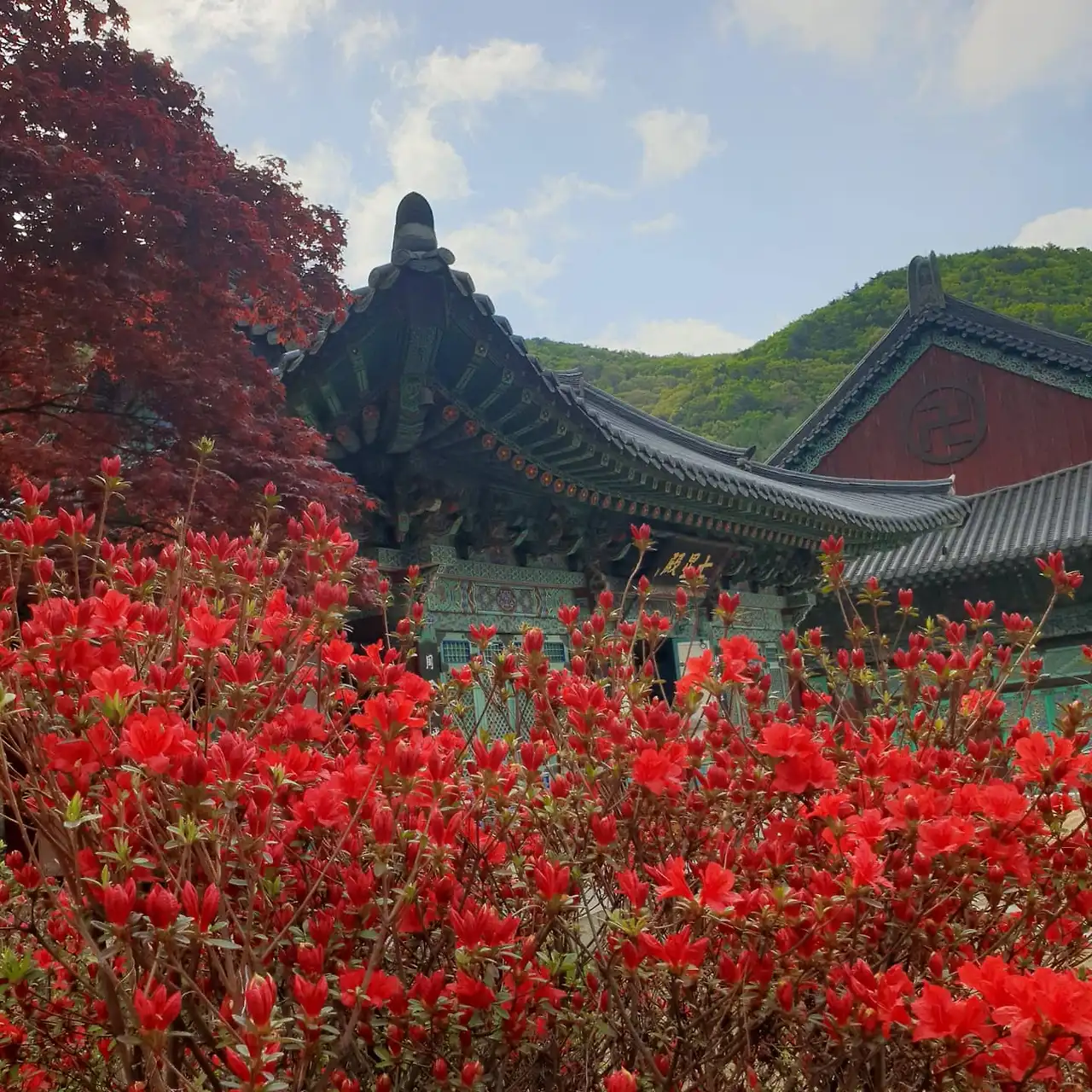 늦잠을 자려했으나 짜증스럽게도 새벽 6시부터 눈이 떠졌다. 계속 다시 잠을 청했으나 야속하게도 정신이 말똥말똥...ㅠㅠ 그! 래! 서! 겹벚꽃이 예쁜 천안 각원사에 가기로 급결정했다. 물론 어젯밤 살짝 고민을 하긴 했었다. 각원사에 가고 싶기는 한데 주말엔 사람이 너무 많아서 주차 전쟁이라는 얘길 듣고, 아침에 일찍 눈이 떠지면 가볼까?... 아마도 그래서 잠이 더 일찍 깼던 건지도 모르겠다. 암튼 가기로 했으니 세수만 간신히 하고 모자를 푹 눌러쓴 채 고속도로를 탔다.