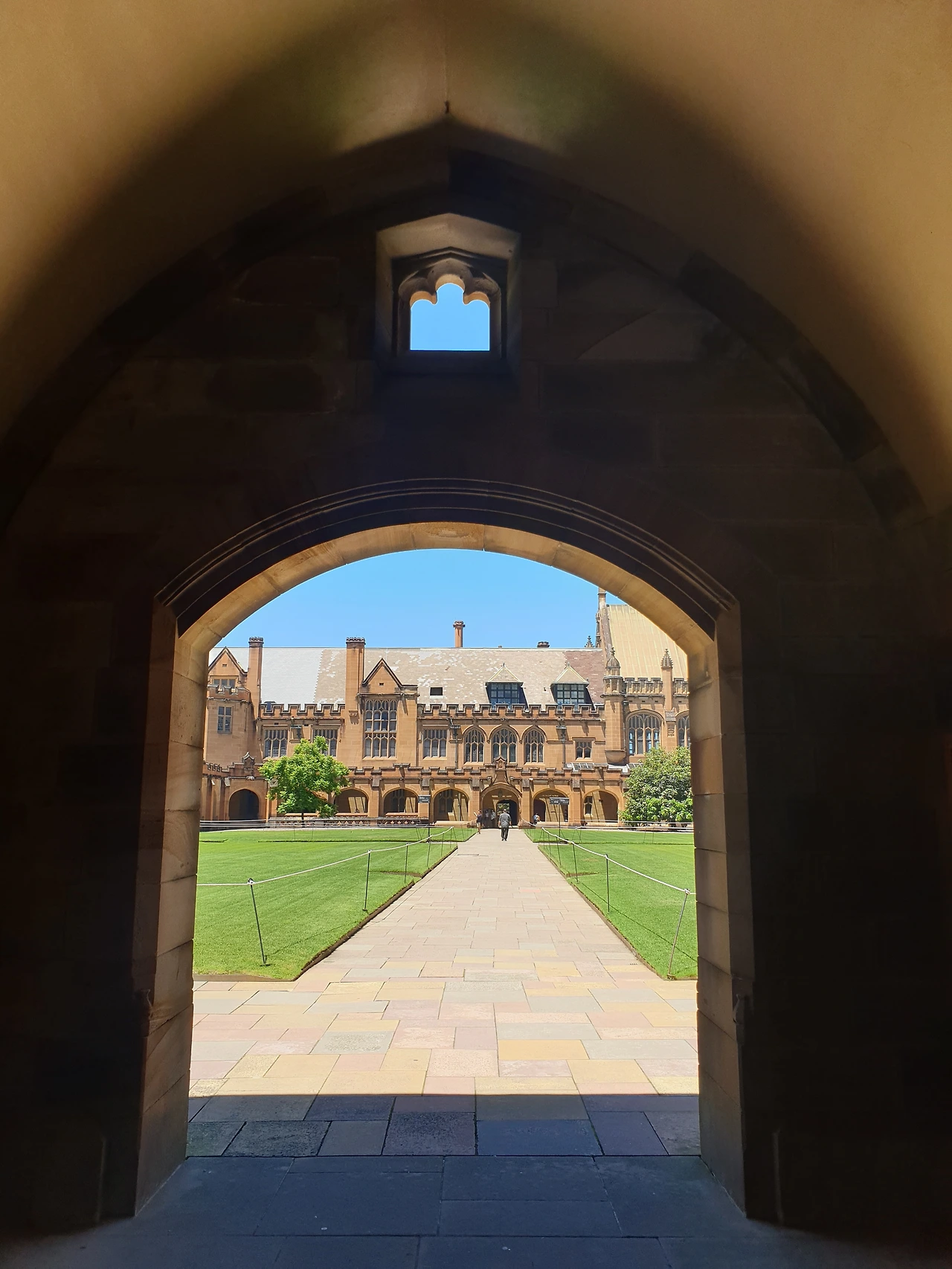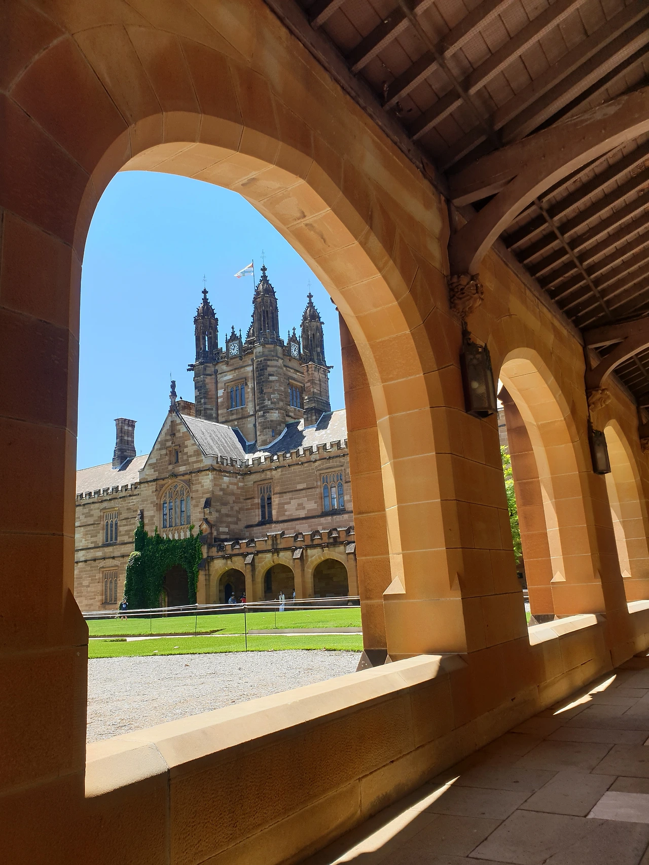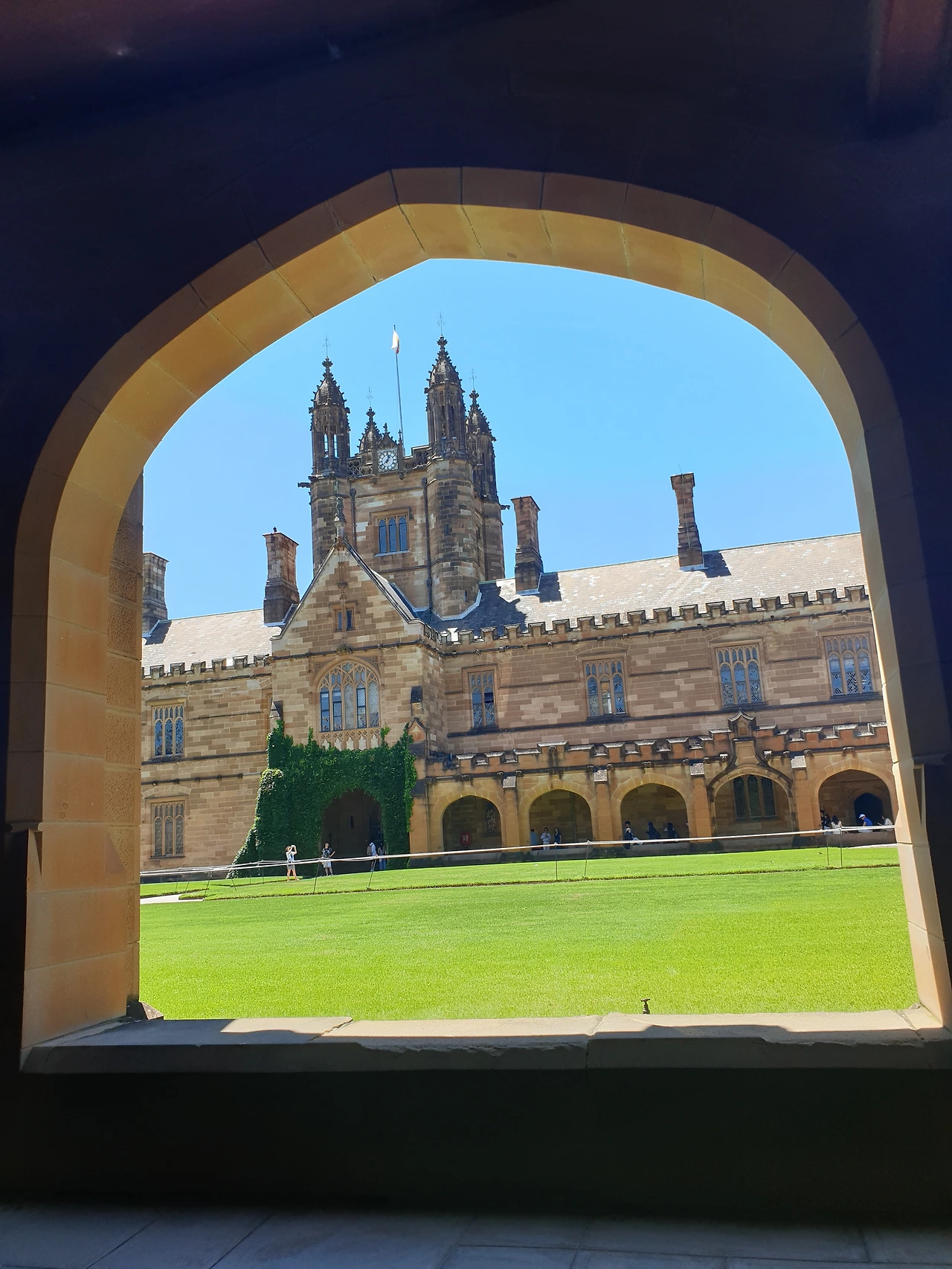 한바탕 쇼핑 후에 버스를 타고 시드니대학교로 갔다. 시드니대학교는 1850년에 세워진 호주 최초의 대학교로 세계에서 가장 아름다운 대학 10위 안에 드는 곳이라고 한다. 해리포터의 호그와트와 닮은 아름다운 교정이 SNS에 인생샷 핫플로 입소문이 나면서 해리포터 포토존으로 유명해진 곳이다. 학교 여기저기를 찾아다니다 보면 해리포터에 나올법한 건물이 보이고 회랑 같은 곳에 아치가 연달아 있는데, 거기가 바로 해리포터 포토존이다. 사람들이 너나 할 것 없이 사진을 찍고 있으니 모를래야 모를 수가 없다.