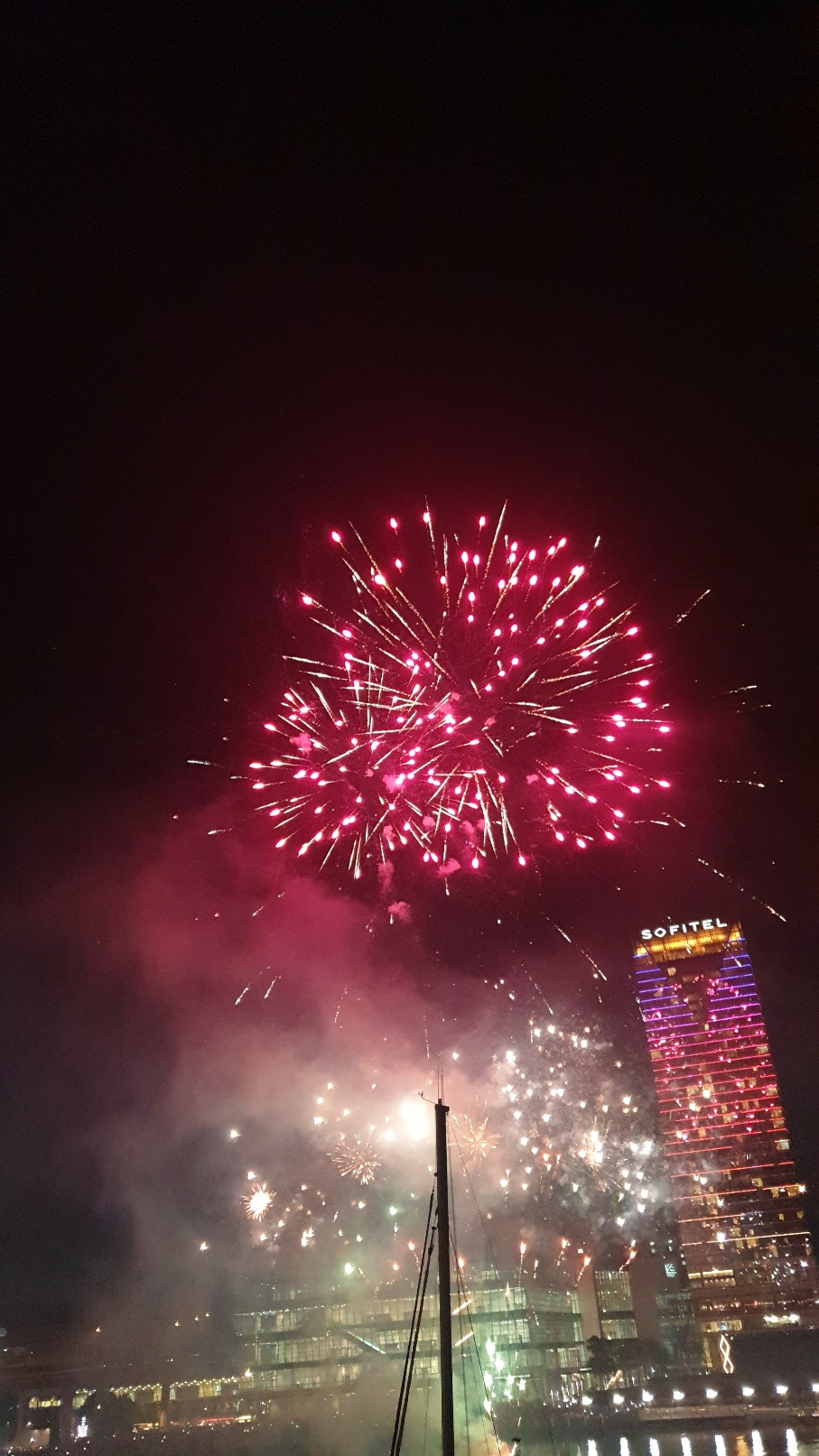 마지막으로, 9시 불꽃놀이를 보기 위해 포인트를 찾아 헤맸다. 블로그를 찾아봐도 정확하게 어디가 불꽃놀이 포인트인지 자세히 나와있지 않았다. 시간은 점점 다가오고, 불꽃놀이 시작 10분 전인 8시 50분, 우리는 우연히 사람들 무리에 합류해 떠밀리듯 다리 위로 올라갔고, 그곳에서 불꽃놀이를 감상했다. 시간이 길지는 않았지만 아름다운 도시의 풍경을 배경으로 터지는 화려한 불꽃은 하루의 피로를 날려버릴 만큼 아름다웠다.