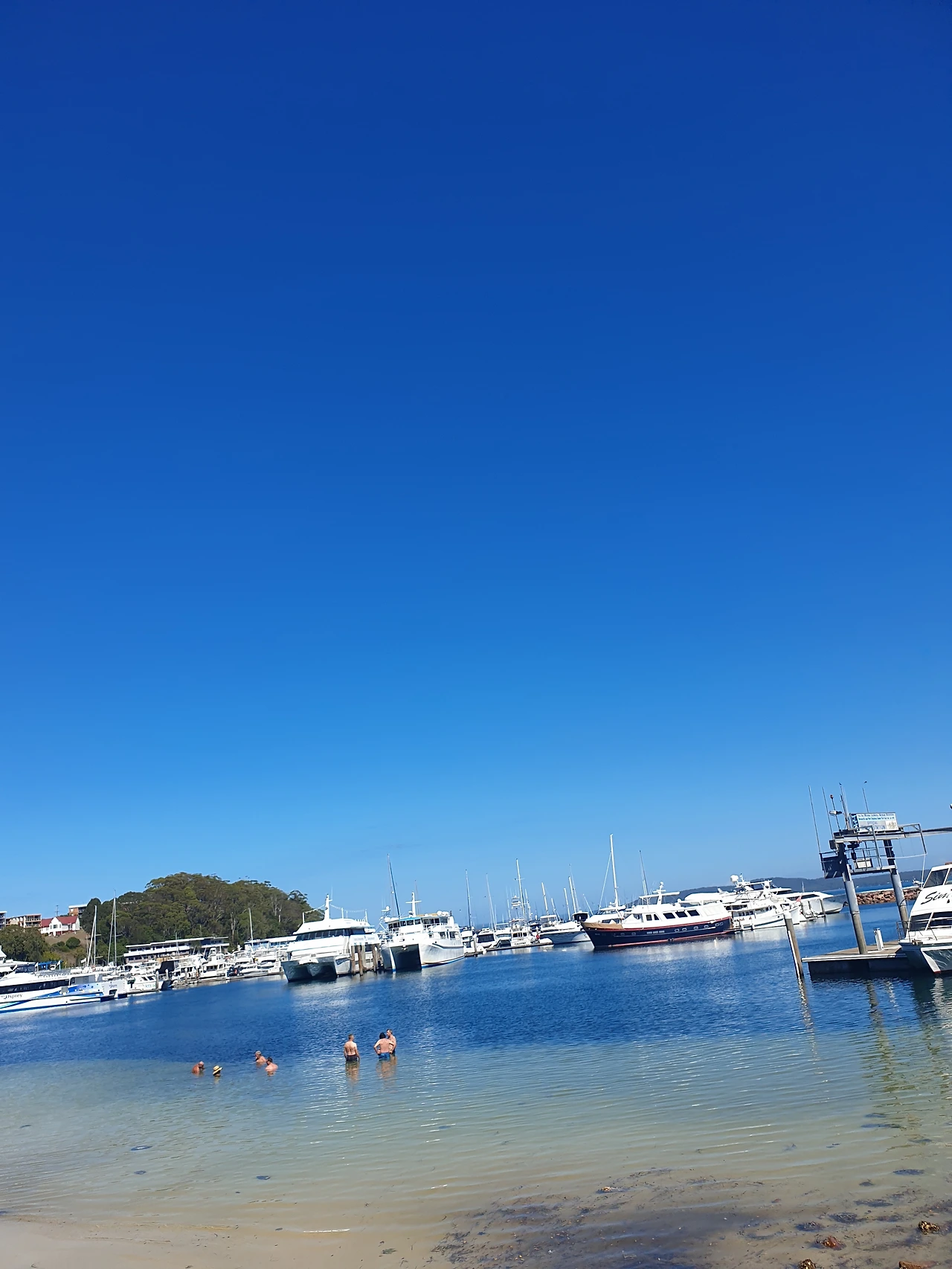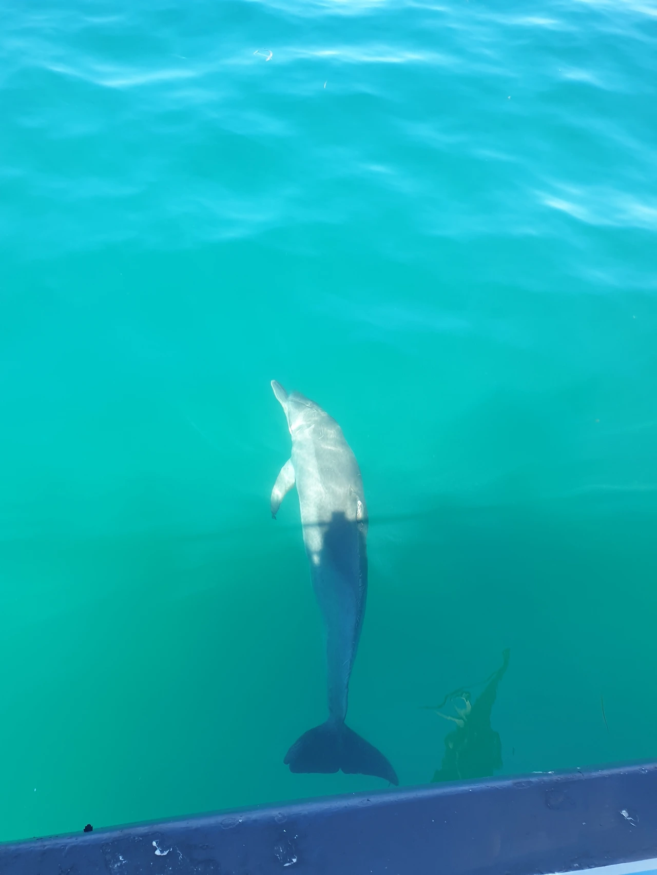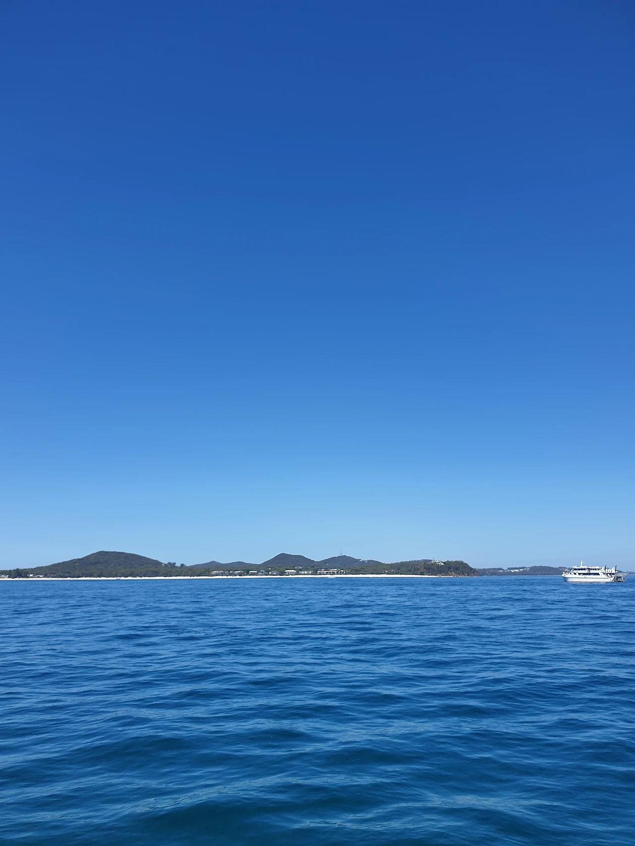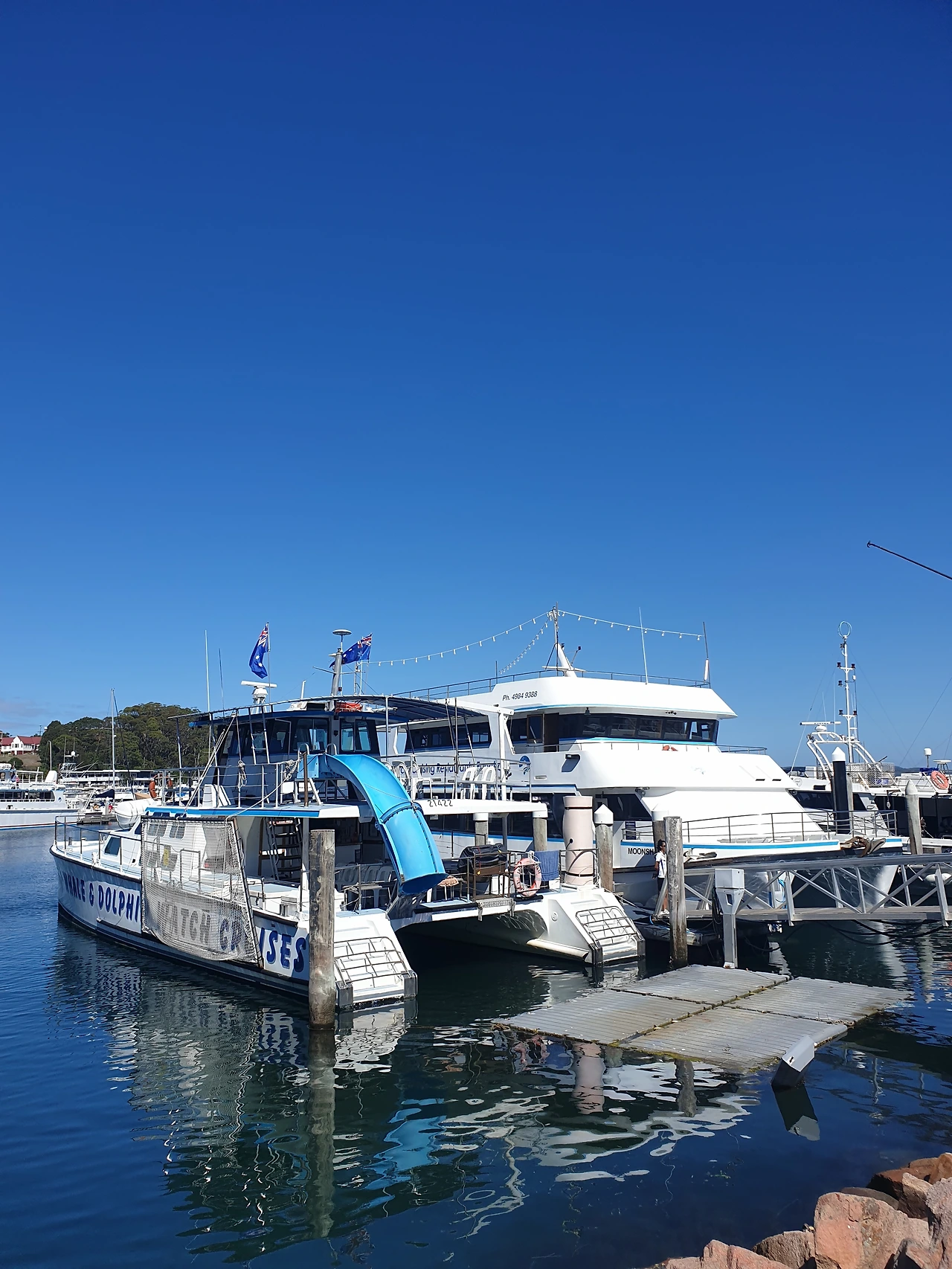 첫 번째 코스는 돌핀 크루즈. 바다 위를 점프하는 돌고래 떼를 기대했지만, 돌고래를 만나기가 어려웠다. 한참을 기다린 끝에 돌고래 몇 마리를 볼 수 있었는데, 점프는커녕 그저 등 지느러미만 살짝살짝 보여주는 수준이었다. 가이드님 말씀으로는 포트스테판의 돌고래들은 평생 큰 파도를 만나본 적이 없어서 점프를 많이 하지 않는다고 한다. 괌에서 봤던 점프 천재 돌고래들과 자꾸 비교됐다. 그래도 돌고래들이 배 바로 앞부분까지 가까이 와줘서 그걸로 만족했다.