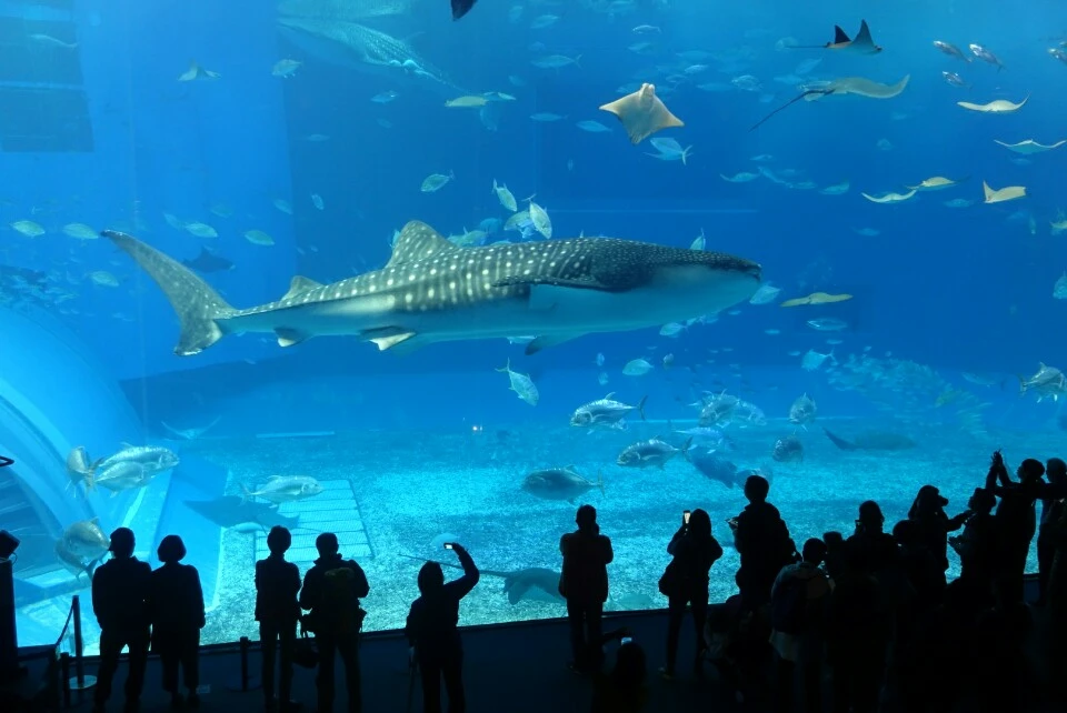 다음 코스는 오키나와의 필수 코스라는 츄라우미수족관. 사실 남들 다 가는 곳은 나에겐 그다지 매력적이지 않았고 '수족관은 애기들이나 가는거지..' 하고 별 기대없이 찾은 곳이었는데 보는 내내 한시도 눈을 떼지 못 했다. 바보마냥 계속 와~와~감탄사만 연발했다. 특히 어마어마하게 큰 고래상어들은 경외감이 느껴질 정도이다. 그들을 가까이 두고 보겠다고 작은 수족관에 가둬둔 인간의 이기심이 부끄러워 미안하기도 했지만 어쨌든 강추!