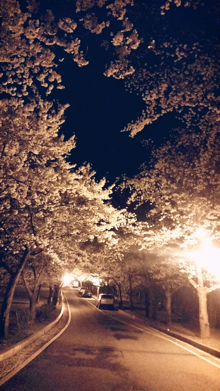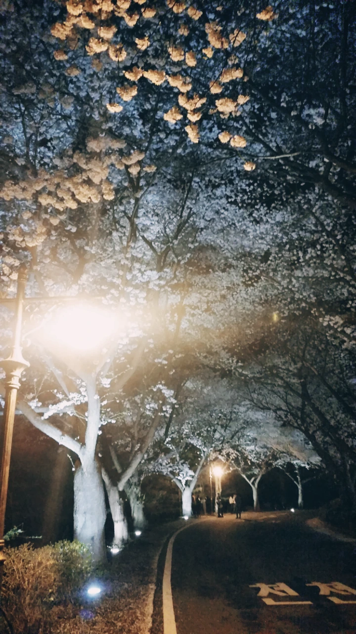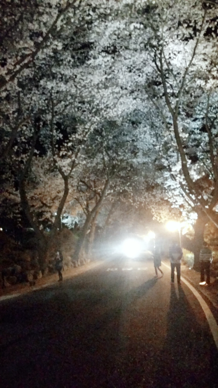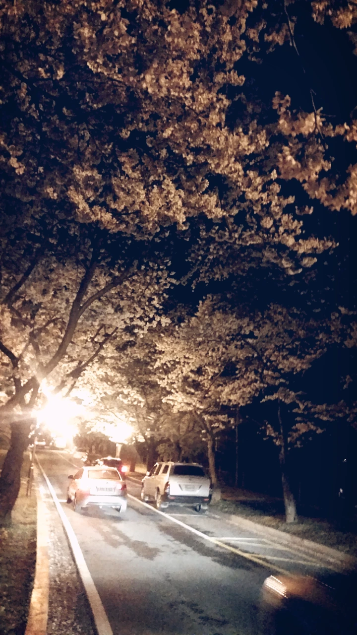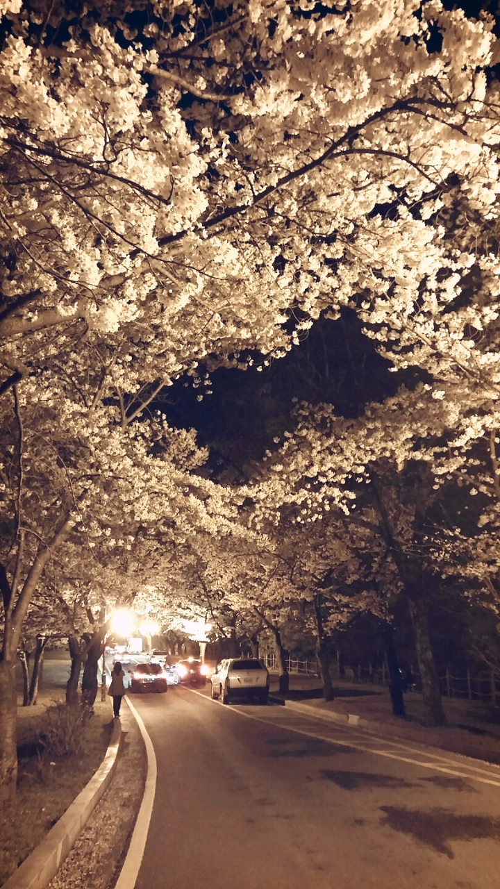 꽃터널 아래 가만히 서 있으니 하늘에서 꽃비가 내린다. 흩날리는 꽃잎이 아름답고도 아쉬운 밤이다.