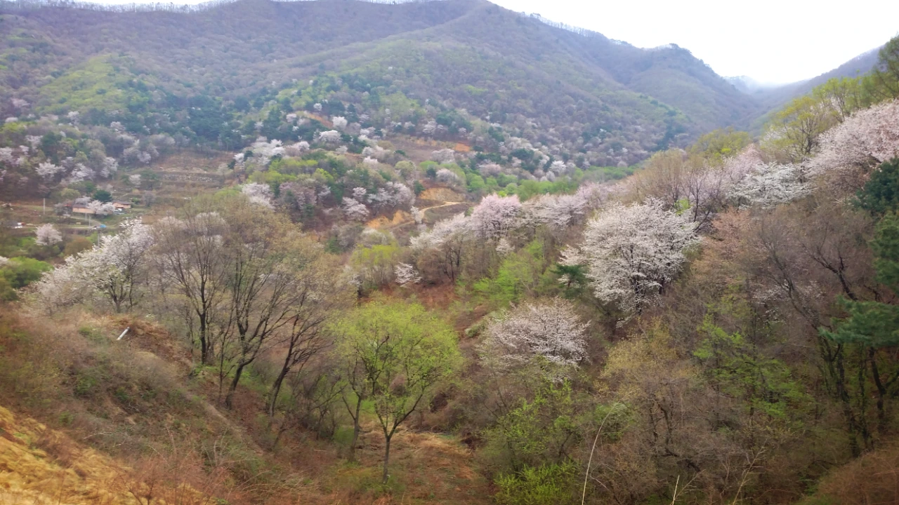 가는 길마다 산이 온통 분홍분홍하다. 연초록나무 사이로 솜사탕같은 산벚꽃, 개복숭아꽃이 연분홍, 꽃분홍 잔치를 벌인다. 어쩜 이렇게 예쁠 수가 있는지~