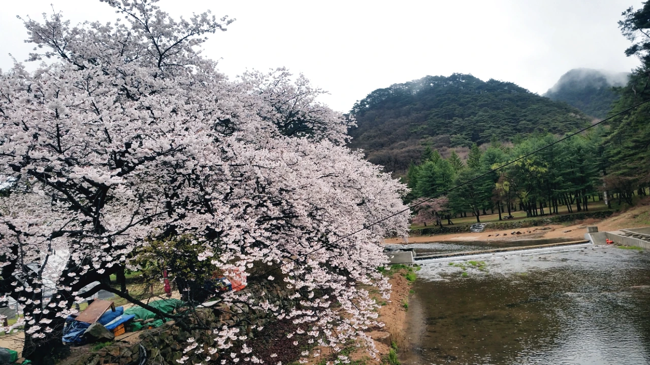 끊임없이 감탄하며 가다보니 목적지에 도착했다. 그 동안 수십 번도 넘게 와봤지만 한 번도 타이밍을 못 맞춰 제대로 핀 벚꽃을 보지 못했던 속리산 벚꽃. 다른 지역보다 기온이 낮아 보통 2주 이상 늦게 피는 터라 타이밍 맞추기가 여간 힘이 든게 아니다.