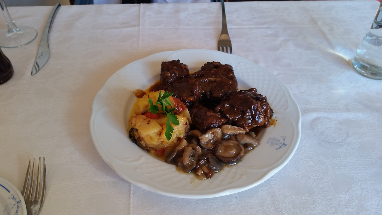 누에보 다리를 건너 투우장과 산 마요르 성당을 둘러보고 절벽 위의 레스토랑에서 꽃할배도 드셨다는 소꼬리 스튜를 시켰다. 정말 맛있을까? 반신반의했지만 딱! 우리나라 갈비찜 맛! 기대 이상의 맛이었다. 스페인에 와서 내가 처음으로 남기지 않은 음식이었으니 믿고 먹어도 될 것 같다.