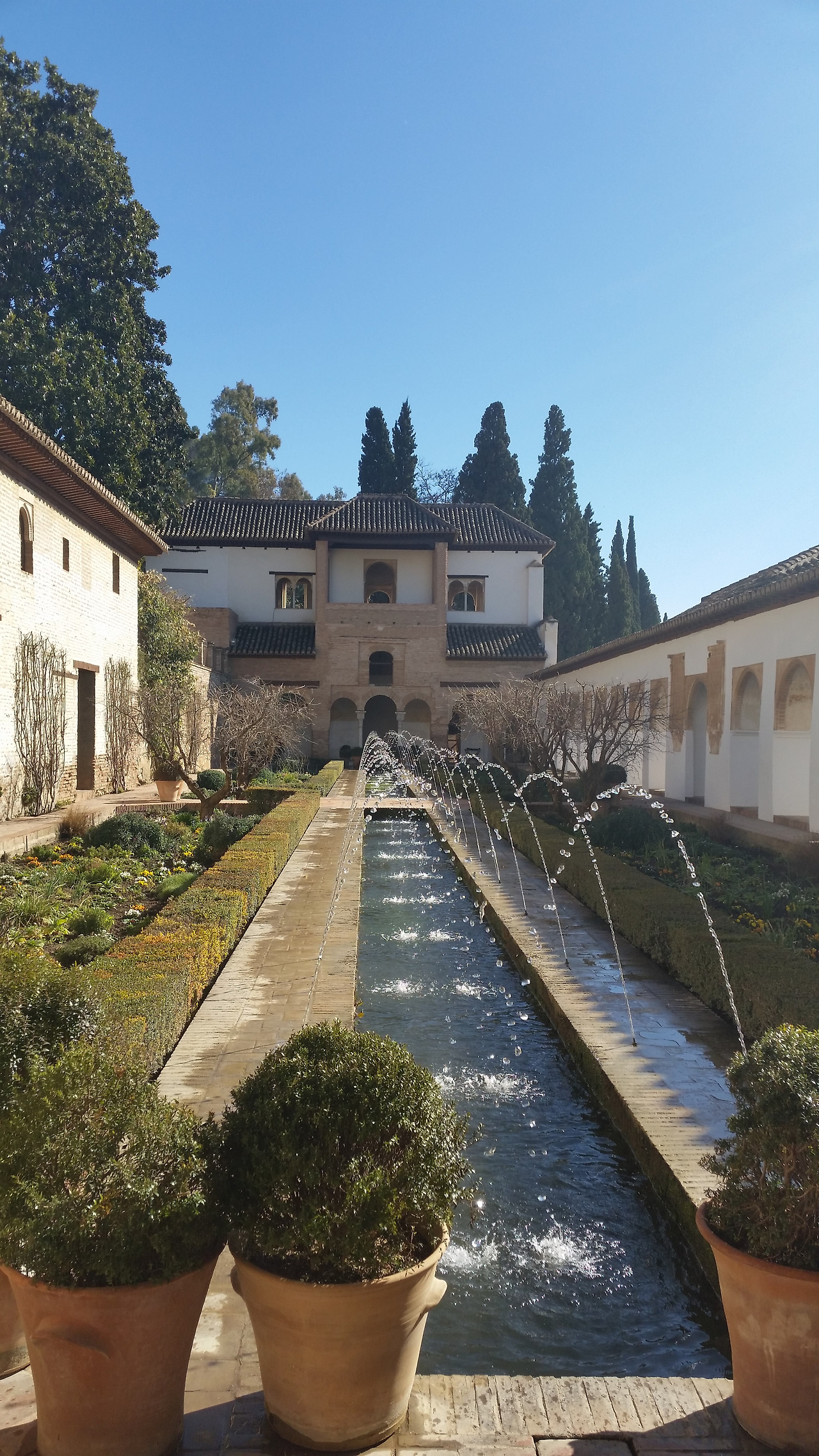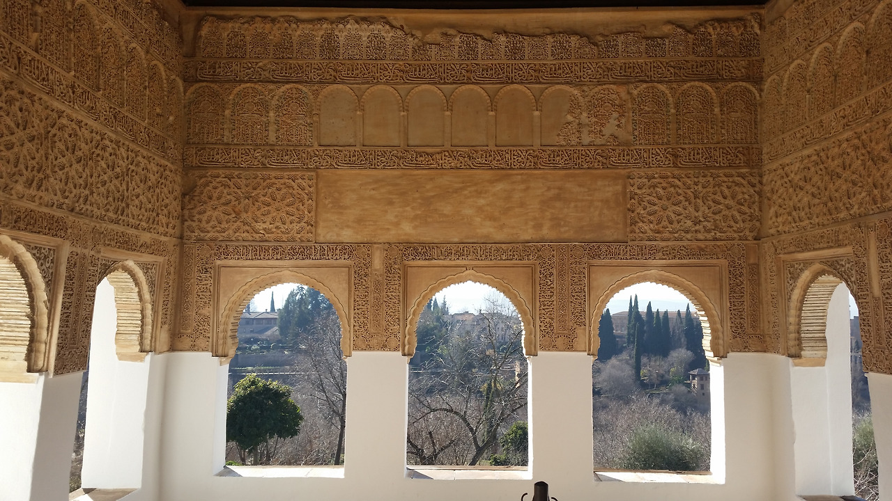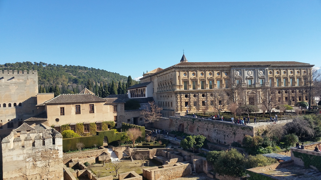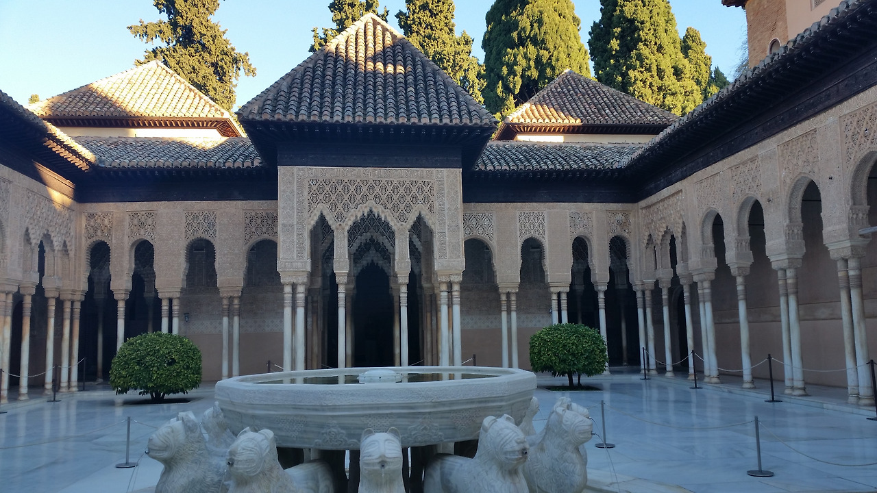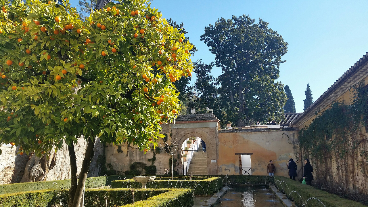 입구에 들어서자마자 하늘 높이 솟은 커다란 나무들이 우릴 압도한다. 미로정원을 지나 왕족들의 여름 별궁인 헤네랄리페, 투우를 즐겼던 카를로스5세궁전, 전망이 아름다운 천의요새 알카사바 그리고 알함브라의 모든 전설이 담겨있는 알함브라궁전의 꽃 나스르궁전까지~