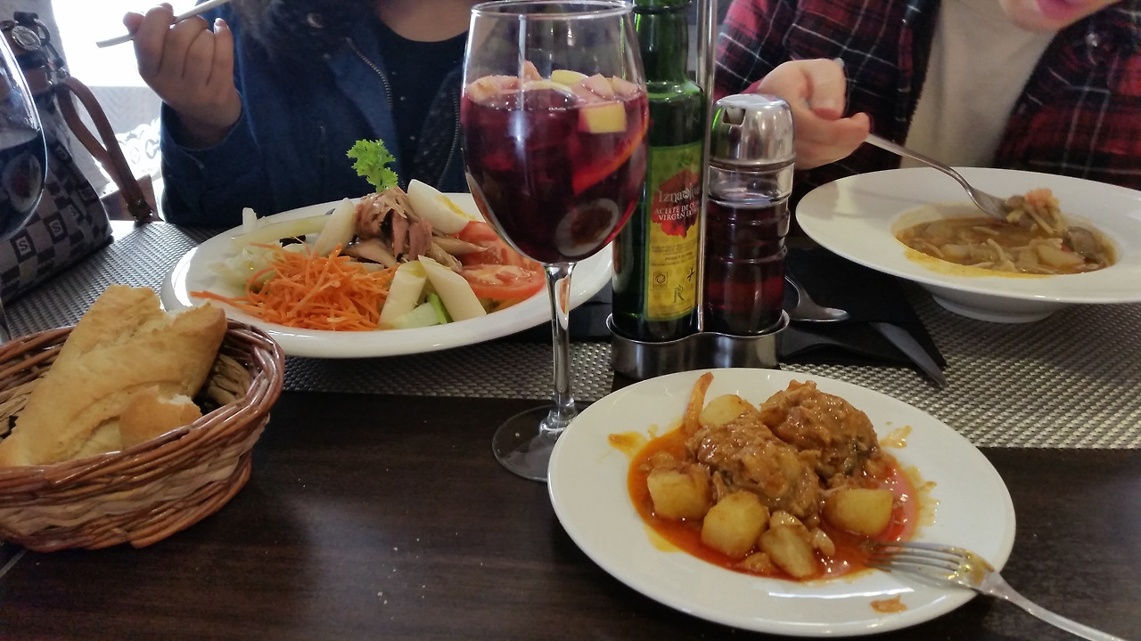 청년은 자기 고모가 마흔 살인데 마흔까지는 누나라 부른다며 누나라 부르겠단다. 누나라는 소리에 귀가 간질간질하였으나 아주 싫지는 않았다. 그 청년이 스페인어를 좀 하는 덕에 오늘의 메뉴와 샹그리아를 시켜 오랜만에 제대로된 식사를 할 수 있었다. 밥을 다 먹고 계산을 하는데 혼자 여행하는 청년이 대견하기도 하고 100유로나 날리고 얼마나 멘붕이었을지 안쓰러운 마음에 누나들이 밥값을 내주겠다고 했더니 극구 사양한다. 그래도 밥값을 내줘야 맘이 편할 것 같아서 내주고 서로 일정을 맞춰보니 그 청년도 론다에 가기위해 5시에 렌페를 타러 기차역에 간다고 해서 우리와 같이 다니기로 했다. 청년의 동행으로 우리의 여행도 생기를 찾는다.
