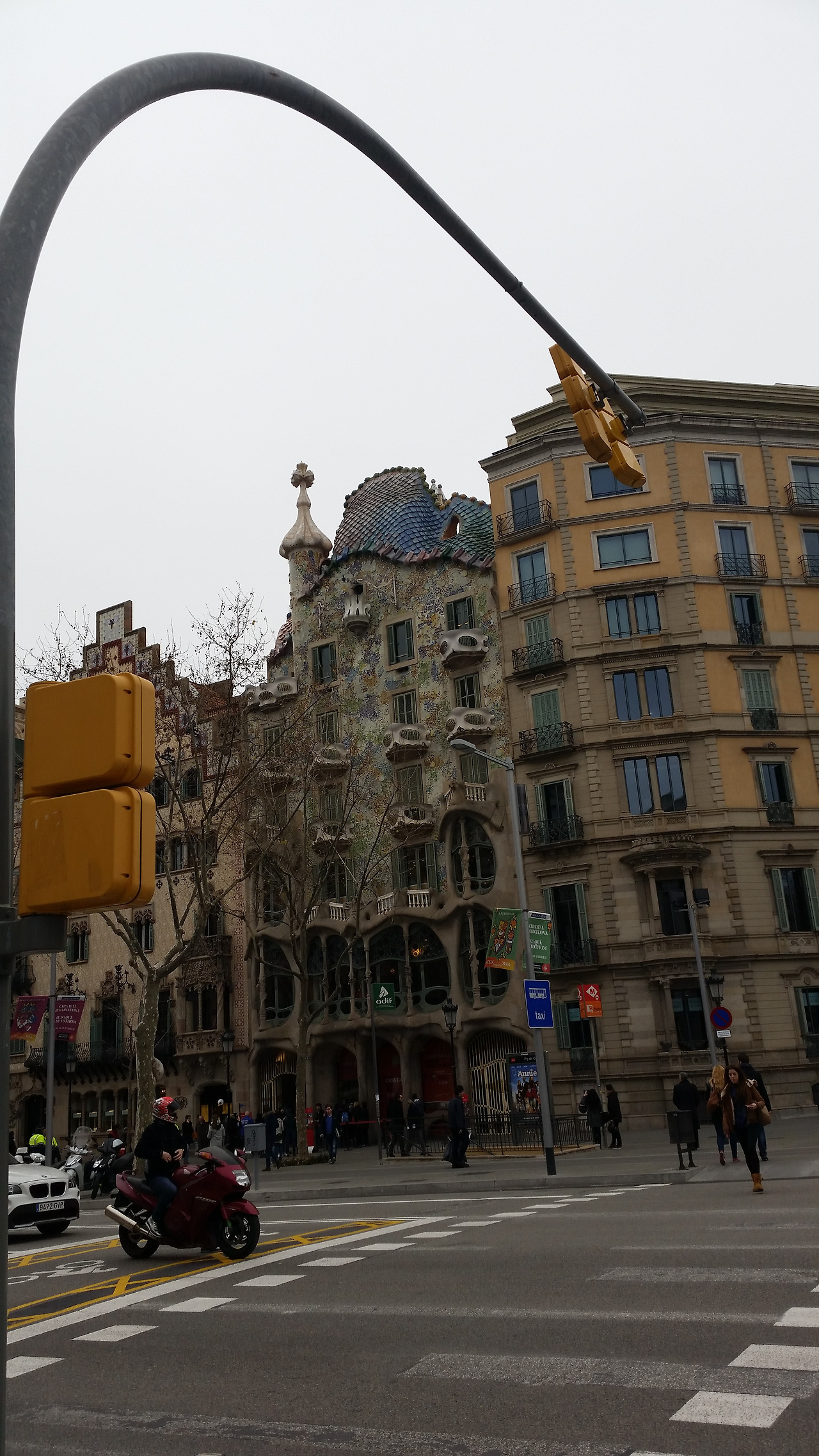 사그리다 파밀리아 성당을 나와 카사바트요로 갔다. 명품상점이 많은 그라시아스거리 한 복판에 있다. 일단 겉모습부터 가우디스럽다.