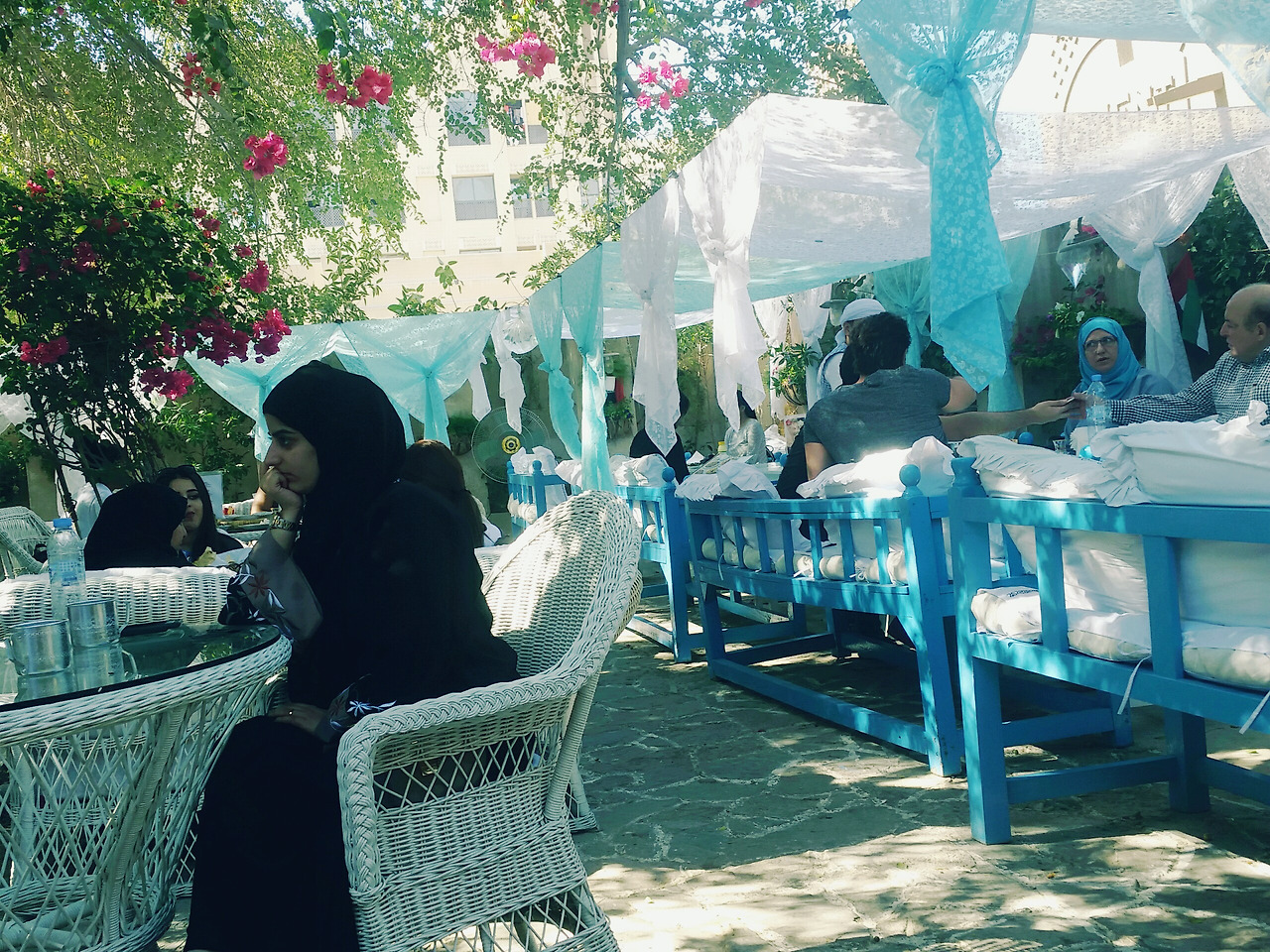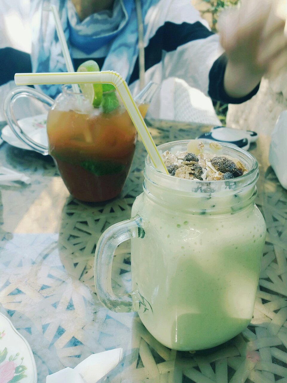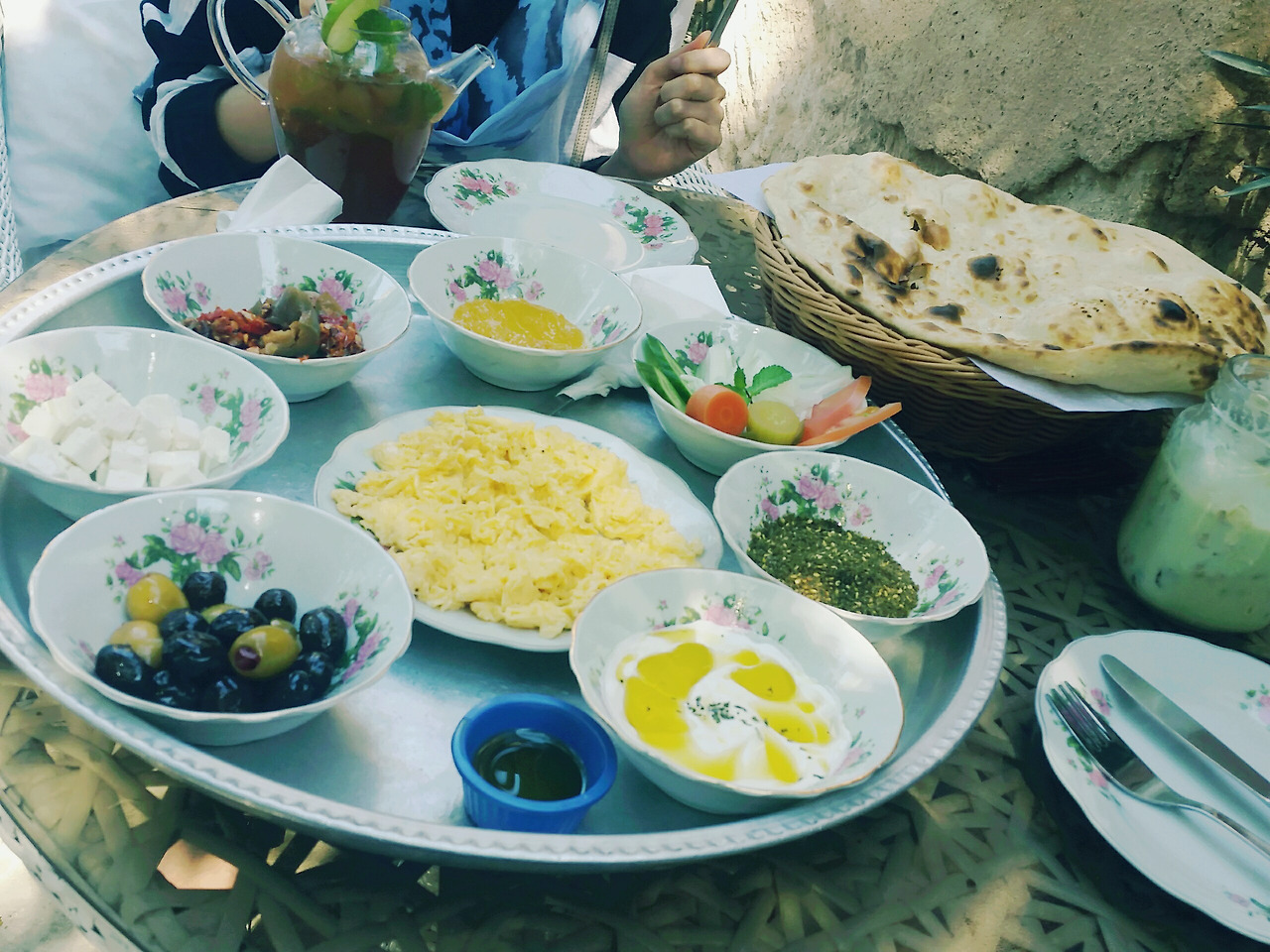 종업원이 적극 추천해준 전통 스타일의 조식과, 모로칸 아이스티와 아보카도 쉐이크를 주문했다. 전통 조식은 시장의 백반집에서 배달해준것마냥 쟁반에 음식이 담겨나왔다. 이 반찬처럼 생긴 것들을 난처럼 생긴 전통 아랍빵에 싸서 먹는건데 생각해보니 오늘 아침 호텔조식에 다 있던 음식들이다. 내일 조식은 전통스타일로 제대로 먹어봐야겠다. 그리고 시킨 음료들은 맛은 있었으나 서효림처럼 눈이 똥그래질 정도의 맛은 아니었다.