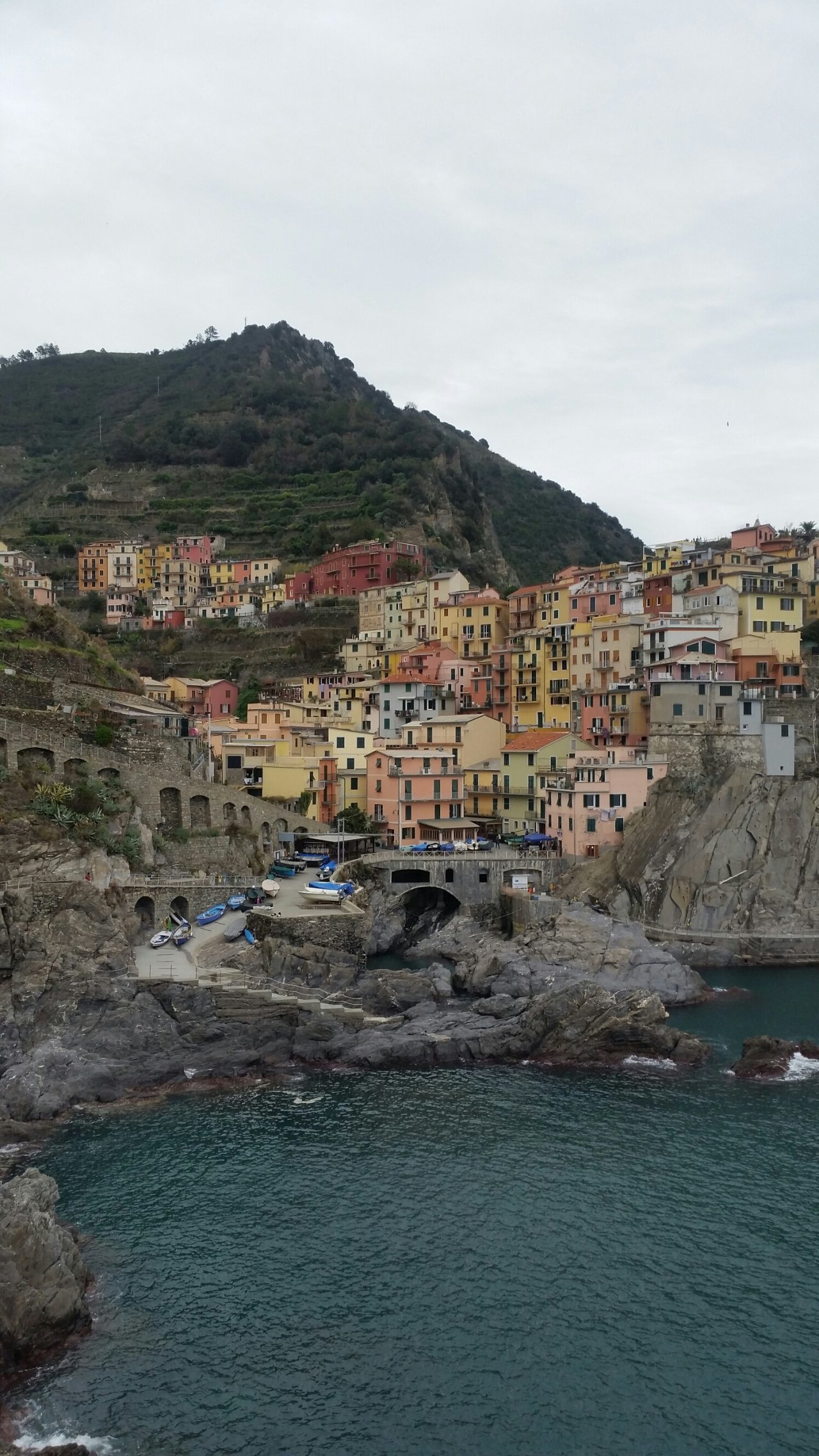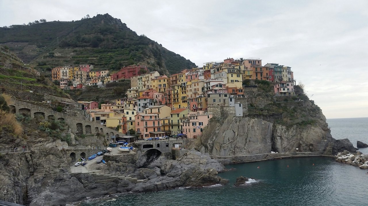 친퀘테레는 5개의 마을이라는 뜻인데, 기차 시간 상 모두 가볼 수는 없어서 '몬테로쏘-마나롤라 - 리오 마조레' 세 군데만 갔다 왔다. 날씨도 흐린데다 비수기라 문 닫은 가게도 많고 뭔가 내가 생각했던 친퀘테레와는 달랐다. 말하자면 절벽 위에 있는 산동네 어촌마을인데, 우리나라로 치자면 통영의 동피랑 마을 같은 느낌이다. 우리가 그동안 봐왔던 친퀘테레 사진도 마을에 따라선 배를 타고 나가야만 찍을 수 있는 곳도 있다. 벌금 150유로의 충격도 아직 잊히지 않았는 데다 경치마저 기대만큼 따라주지 않으니 본전 생각이 절로 났다. 여름 성수기엔 보다 활기차고 멋진 모습이겠지만 겨울 친퀘테레는 개인적으로 추천하지 않으련다.