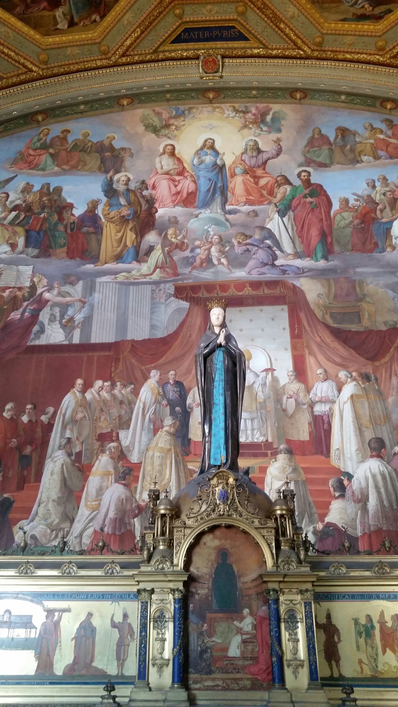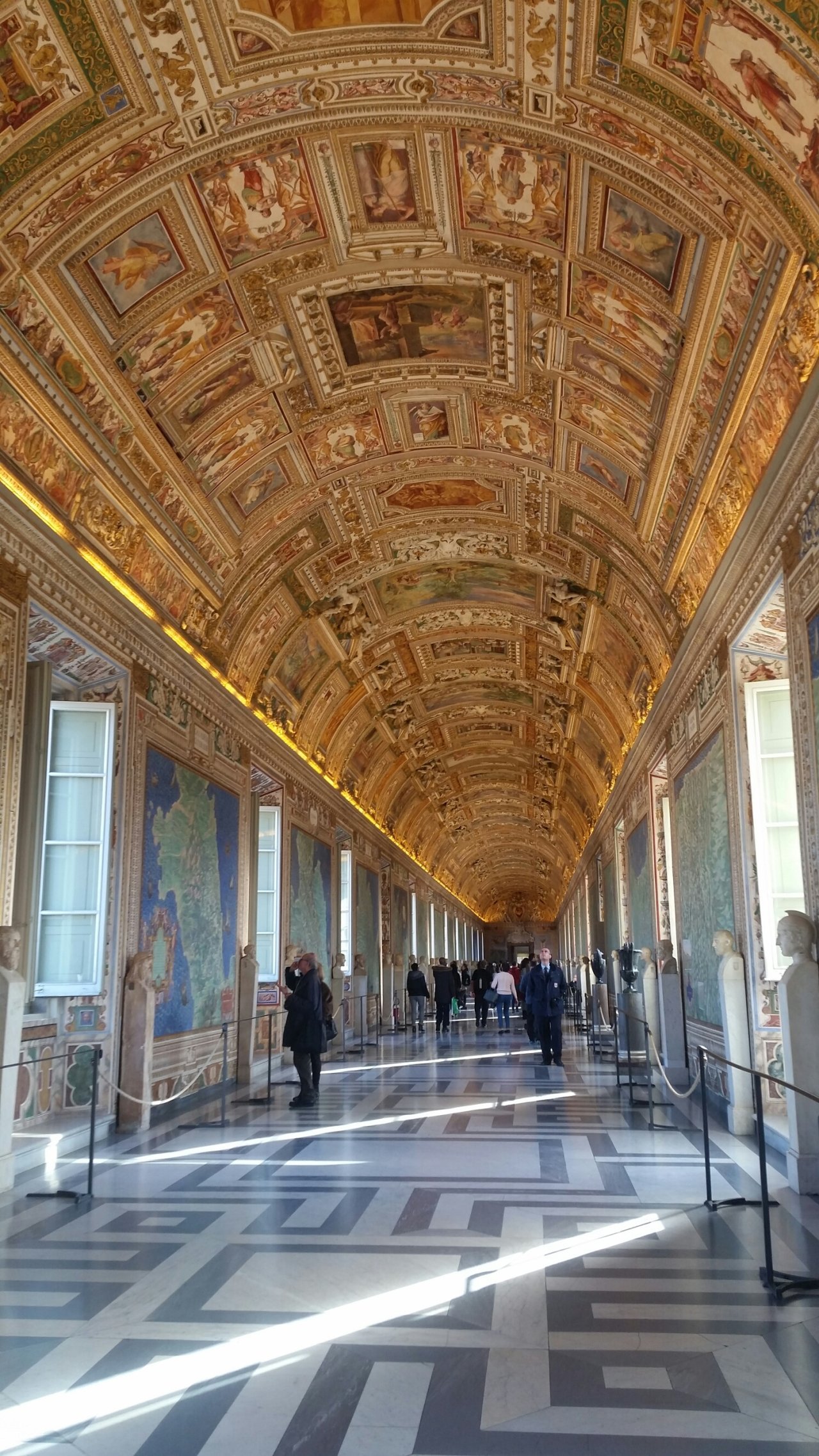 2) 시스티나 성당 미켈란제로의 천장화(흔히 천지창조라고 알고 있는 작품)와 최후의 심판이 있는 성당이다. 천장화는 미켈란젤로가 32살의 나이에 4년 6개월에 걸쳐 완성된 작품이고, 최후의 심판은 61세의 나이에 무려 6년에 걸쳐 완성한 대작이다. 직접 보면 작품의 어마어마한 크기에 감탄하지 않을 수 없다. 다들 천장을 올려다보느라 정신이 없다. 안타깝게도 시스티나 성당은 사진 촬영이 안 된다.