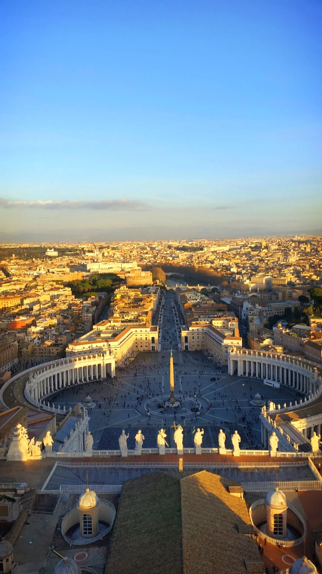 5) 베드로 광장 베르니니가 설계한 광장으로 284개의 원기둥이 둘러싸고 있다. 쿠폴라에서 바라보면 성 베드로를 상징하는 천국의 열쇠 형상으로 보인다. 매주 일요일 12시에는 교황님의 모습을 직접 볼 수도 있다고 한다.