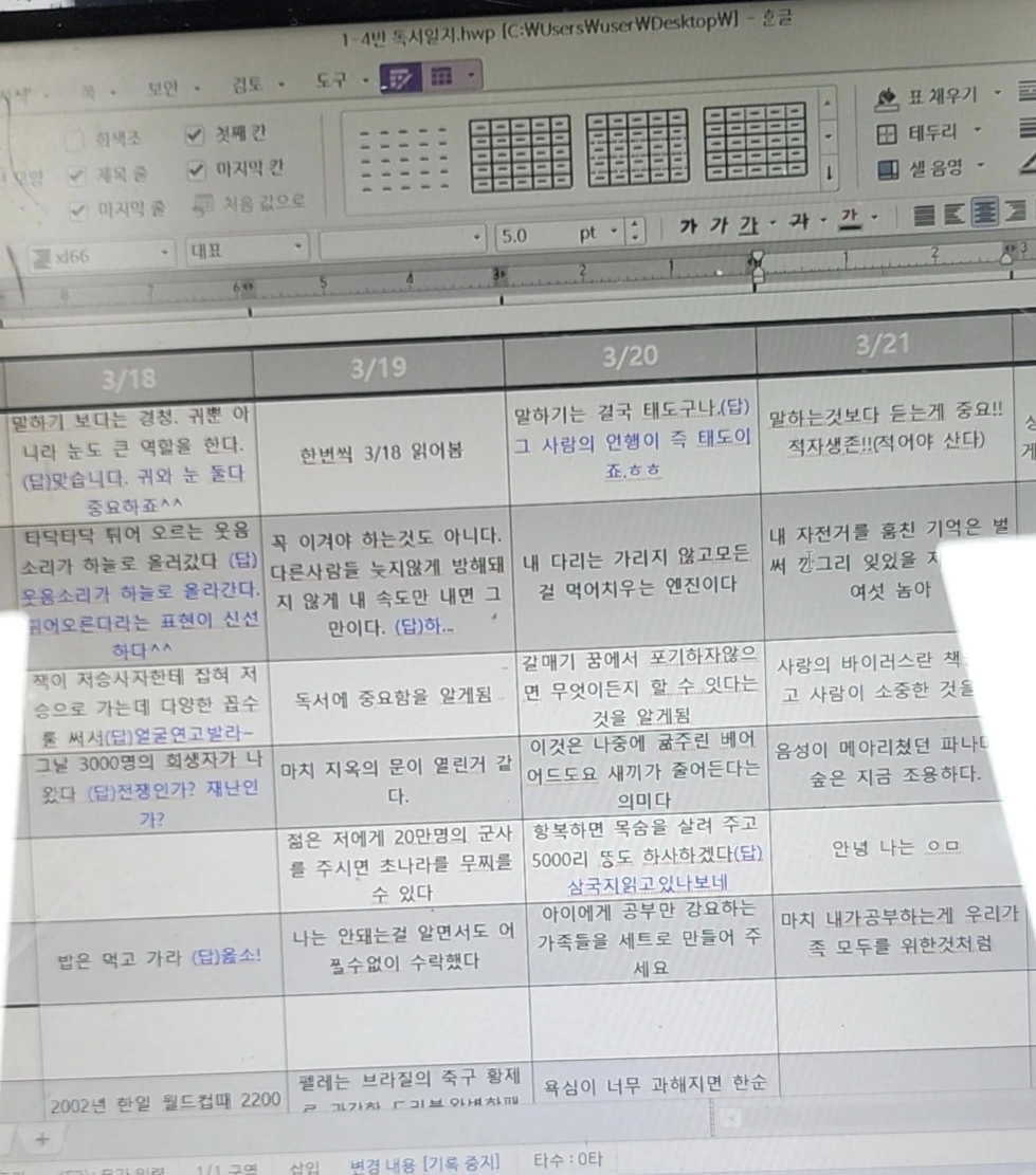 (매일 그 전날 독서 답글을 달아준다.)