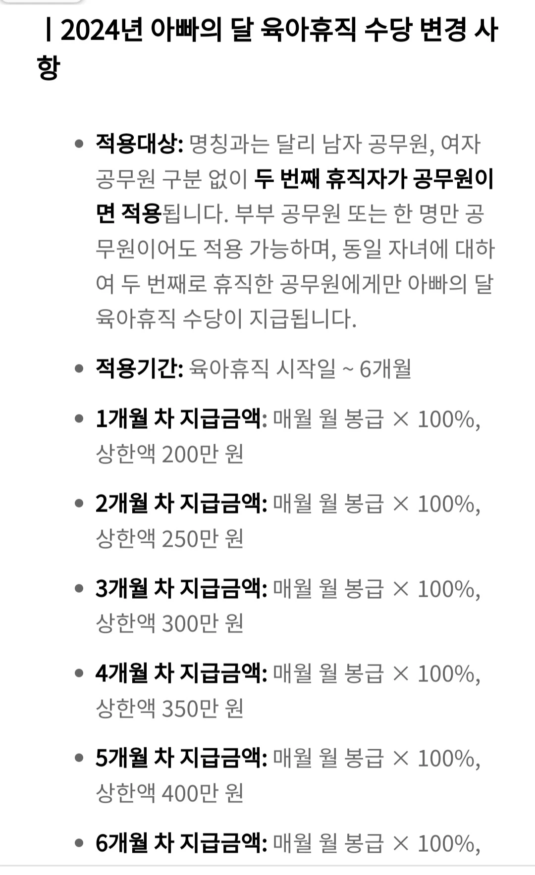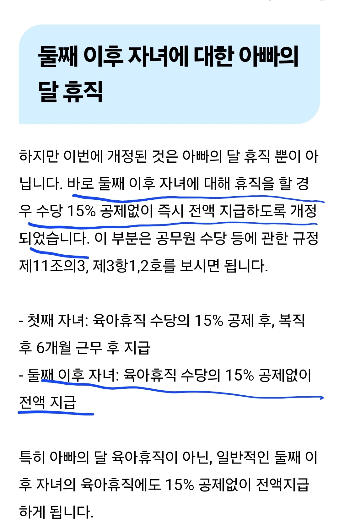 3. 둘째에 대해서는 육아휴직 수당 15%를 떼지않는다.