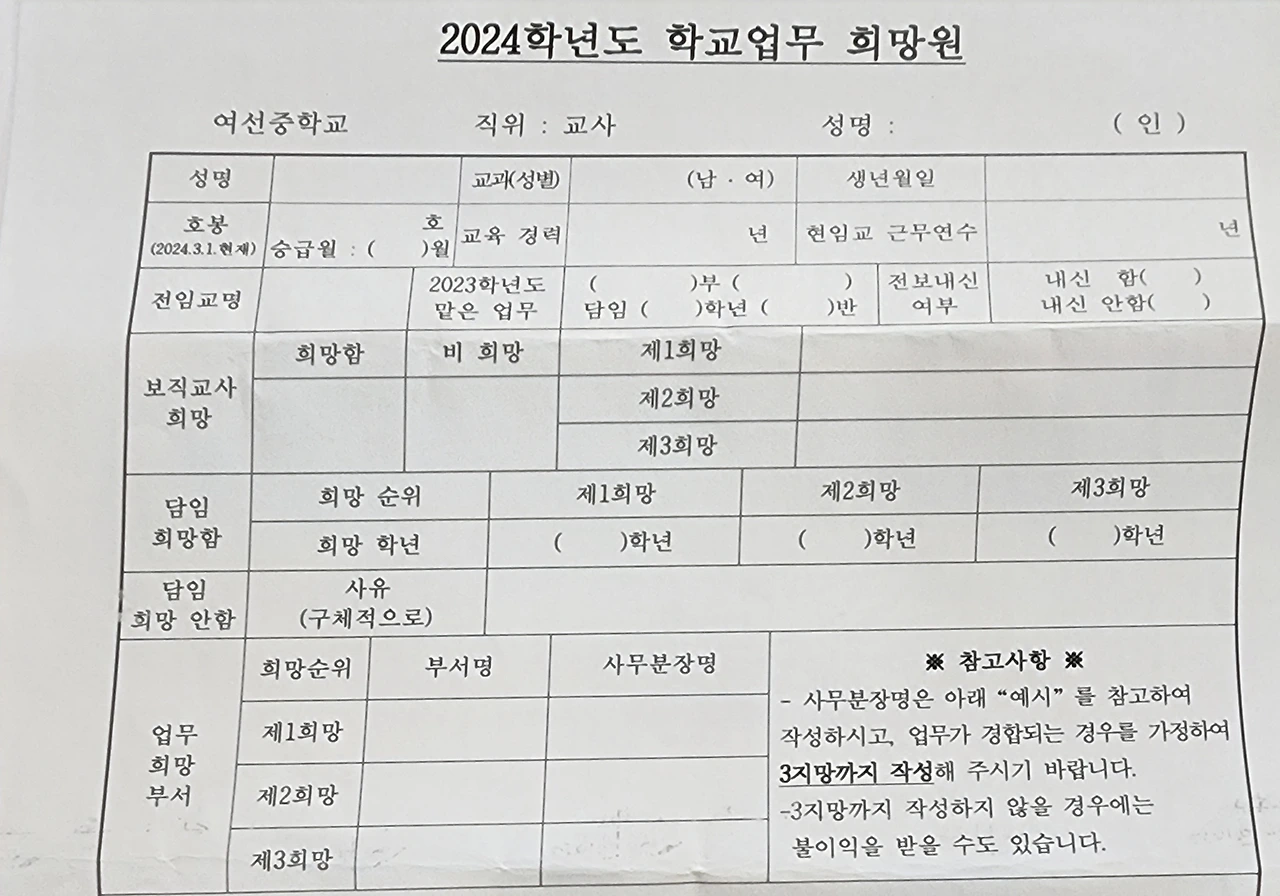 매년 업무분장은 교감쌤의 전화로 오는 부장자리 부탁을 거절하고 자기 잇속을 욕을 잠깐 먹더라도 챙기는 사람이 1년이 편하게 된다.